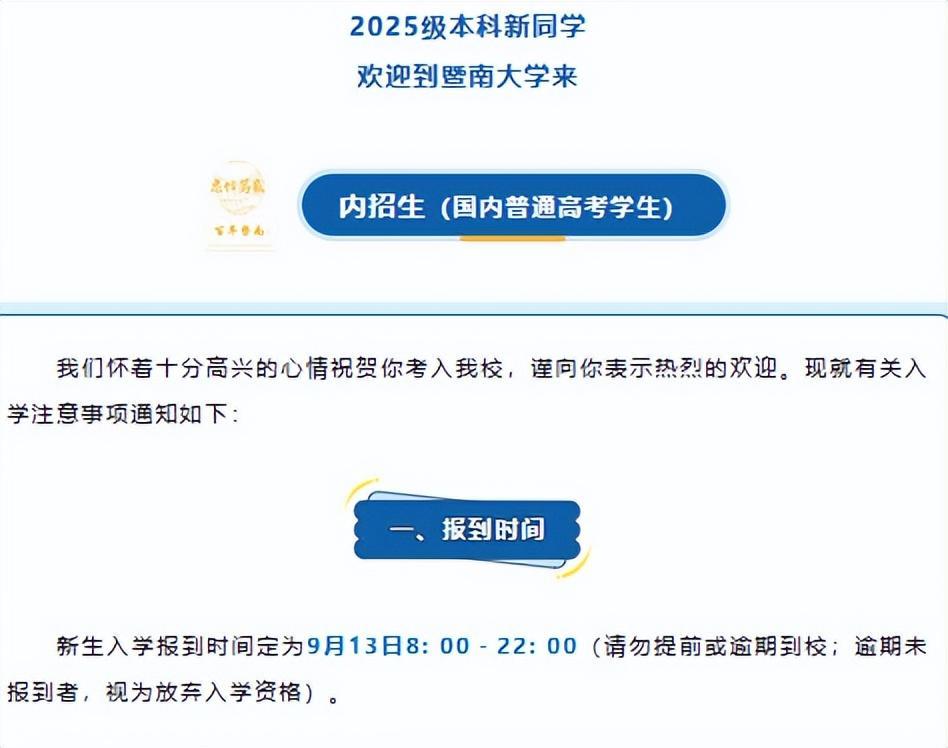 据此前报道,全红婵被保送进入暨南大学就读运动训练专业,今年9月就将成为一名大一新生。据暨南大学新生报到指南,新生入学报到时间定为9月13日8: 00-22: 00。