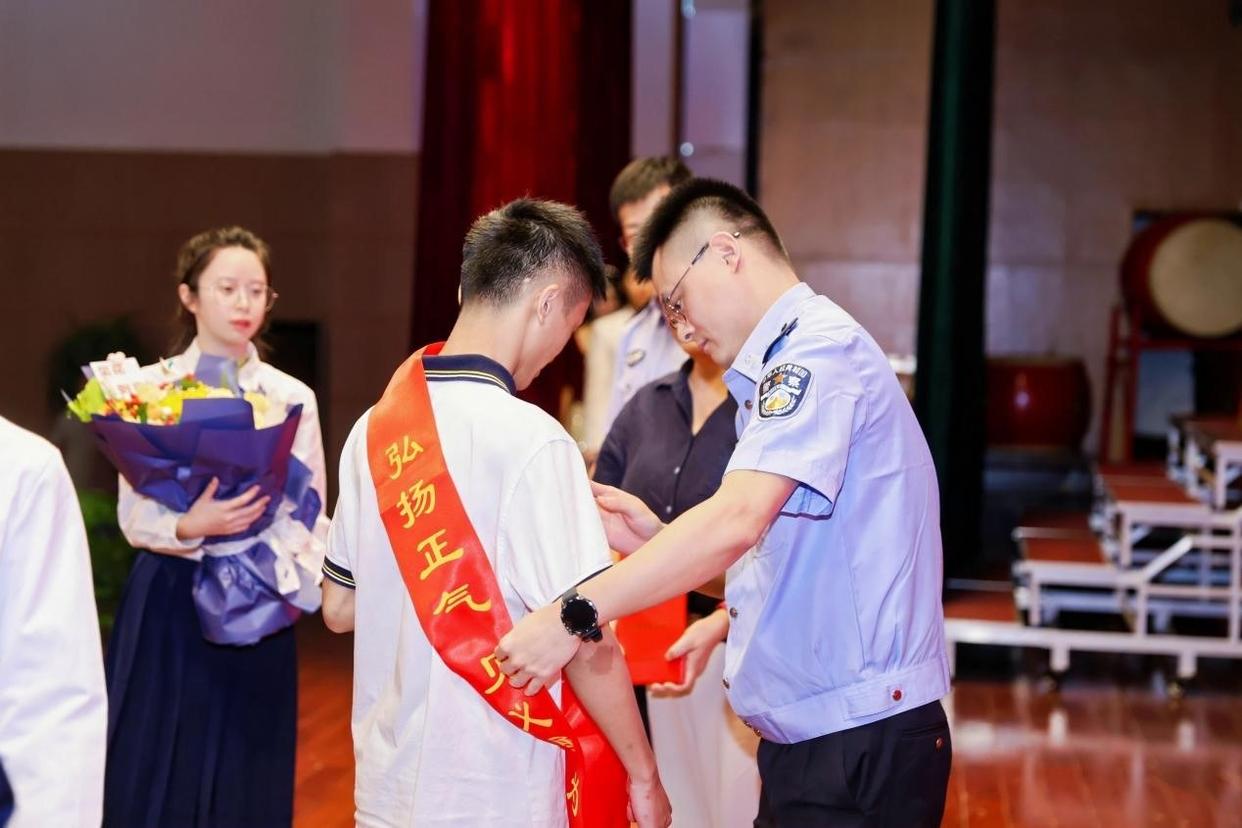 杭州市电子信息职业学校不仅重视学生的技能教育,也十分重视学生的德育教育。因此,在开学典礼上,学校专门为满建江同学设计了一个表彰环节,为他见义勇为、见义智为的行为点赞。在表彰仪式现场,徐利华向同学们讲述了满建江同学见义勇为、见义智为的行为,并向他颁发“杭州市见义勇为积极分子证书”和奖励金5000元,北山派出所副所长蒋瑶为他披上绶带,杭州市公安局西湖分局防控治理中心副主任翟飞锋为他送上鲜花。