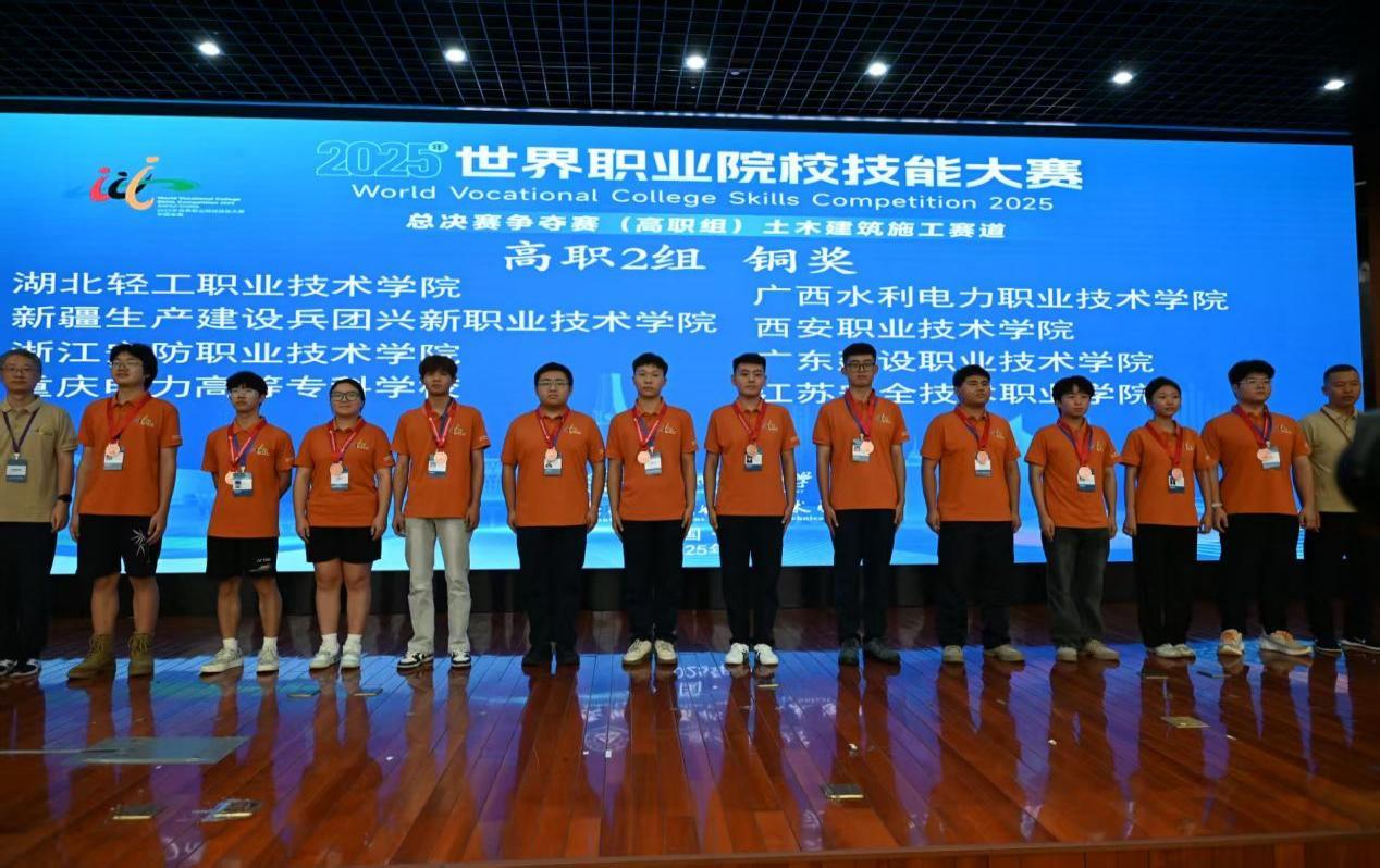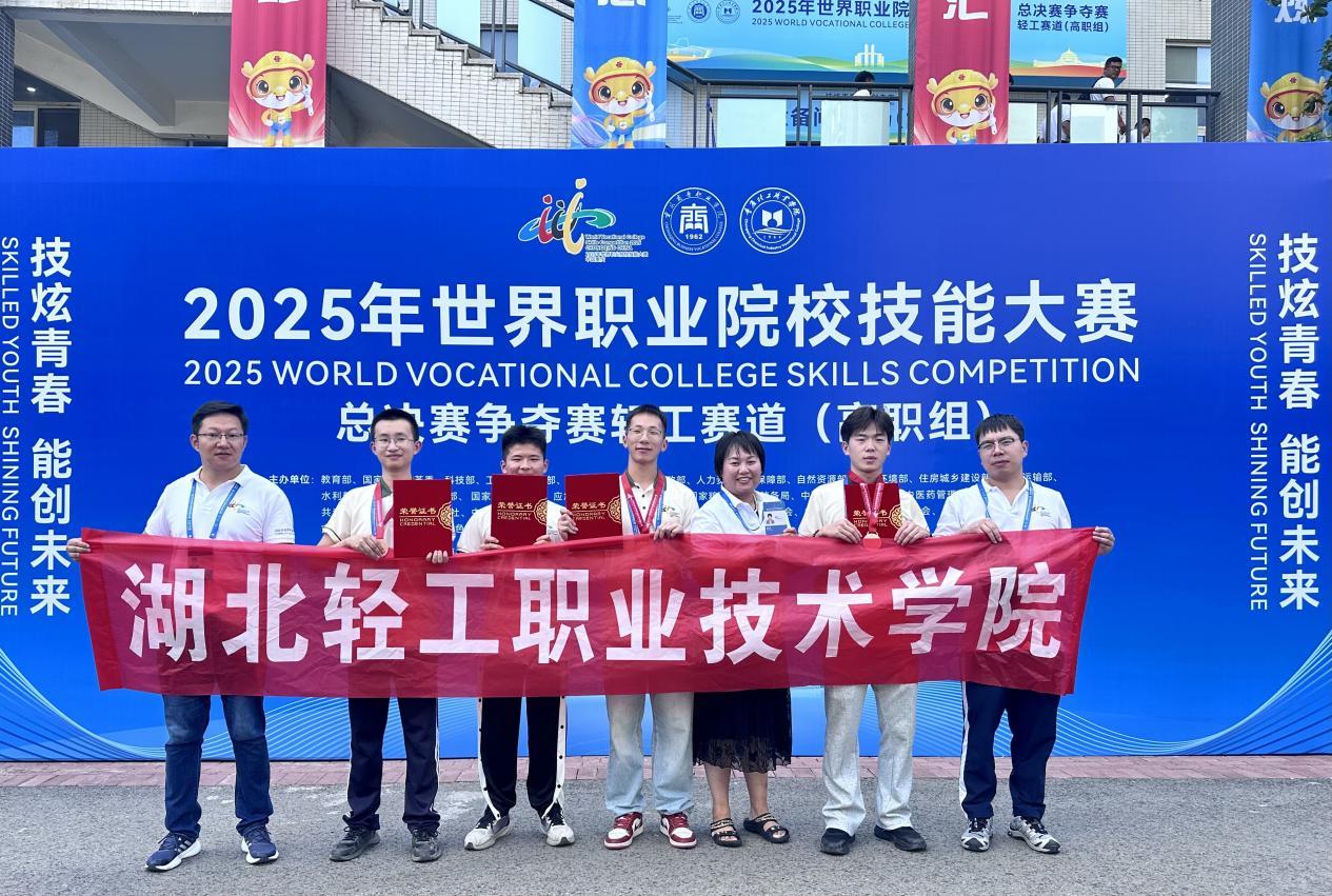 来自湖北轻工职业技术学院建筑工程与设计学院代表队的建筑智能化专业师生代表,获得世界职业院校技能大赛土木建筑施工赛道(高职组)总决赛争夺赛铜奖!湖北轻工职业技术学院轻化工程学院选派的三支精英队伍,在2025年世界职业院校技能大赛总决赛争夺赛“生物技术”、“食品与粮食”、“轻工”三大赛道的激烈角逐中,斩获两银一铜的优异成绩。