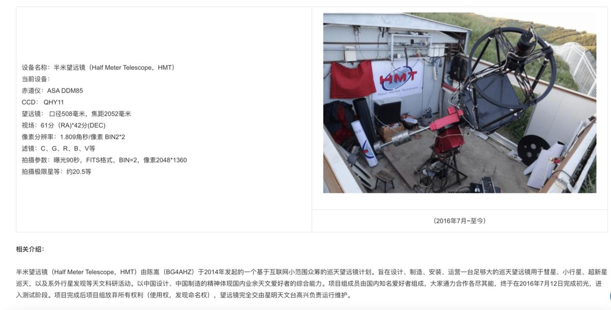 编号为807098的小行星于2017年被星明天文台发现,发现它的望远镜正是陈嵩带领团队制作的“半米望远镜”。