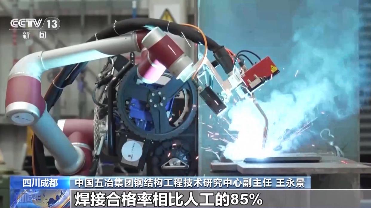 总台央视记者 古峻岭:除了高空,它还可以深入桥梁、隧道等狭小空间,完成人工难以实施作业的焊接难题。有了它,高危场景的焊接作业不再让人提心吊胆,工人们多了安心。安全有了,效率也更高了,这就是智能工业机器人带来的科技推动力。