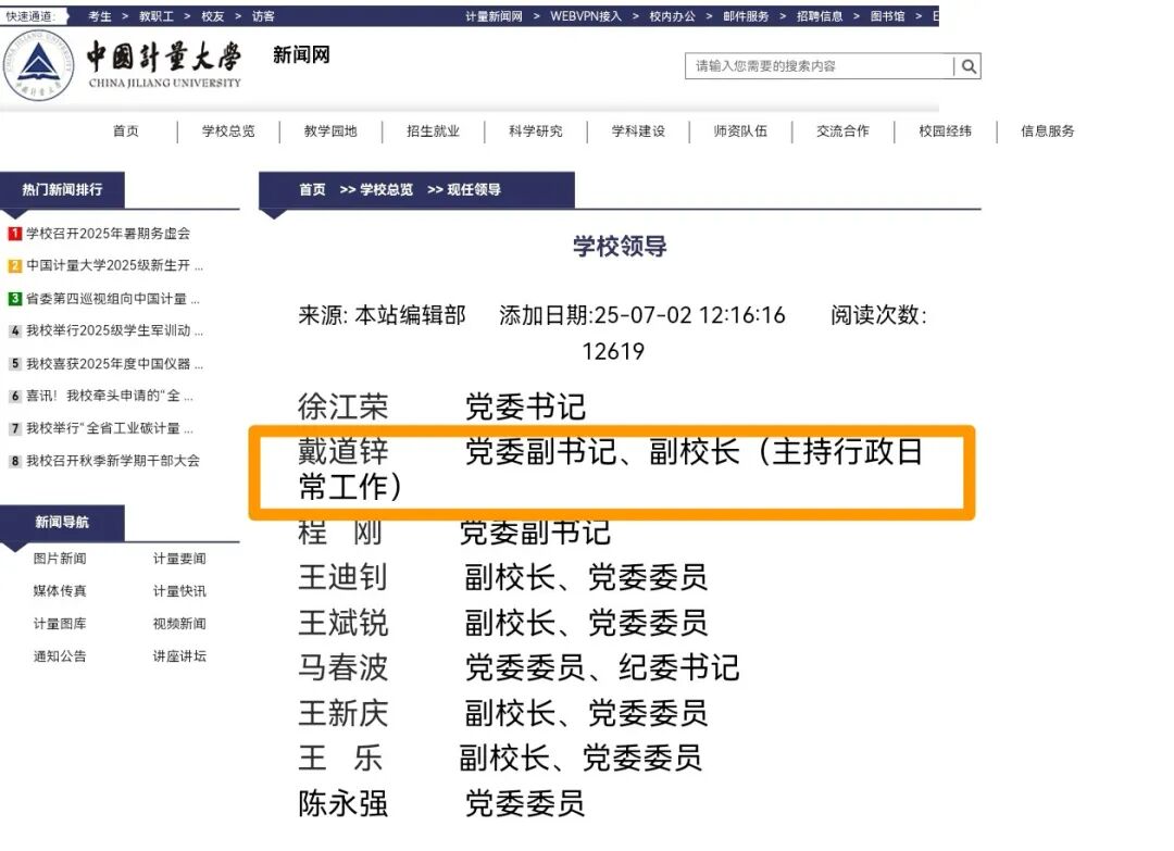 其实,早在今年7月,浙江省政府官网发布消息,省政府研究决定戴道锌任中国计量大学副校长。