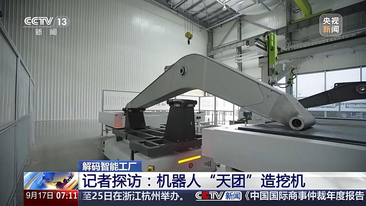 这个机械臂正稳稳握着拧紧轴,给这台挖掘机车身上螺栓,动作又快又稳。即便面对“上下车身合体”这样的复杂工序,也能精准完成对接,无需人工干预。