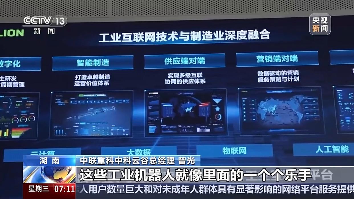中联重科中科云谷总经理 曾光:你可以把整个超级工厂看作是一个巨型交响乐团,这些工业机器人就像是里面的一个个乐手,工业互联网平台进行大量运算,来把整个工厂给井井有条指挥起来,让整个乐团能够齐心合力演奏出一曲交响乐。
