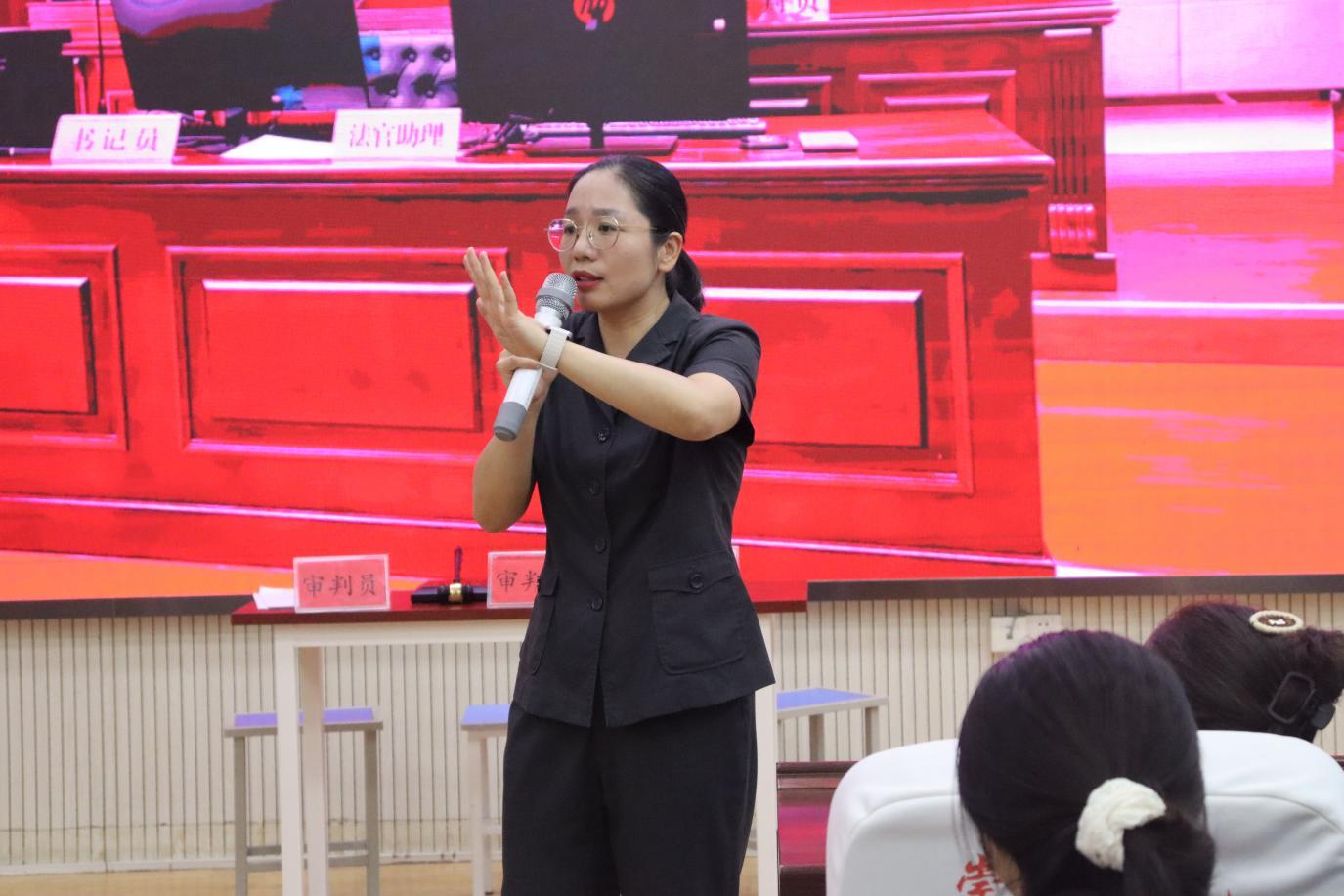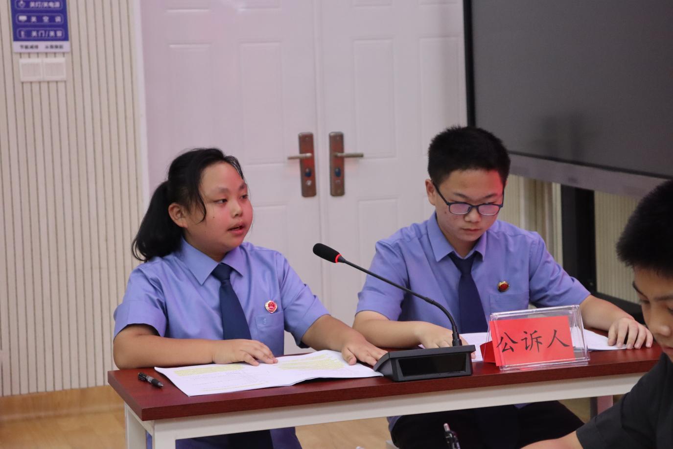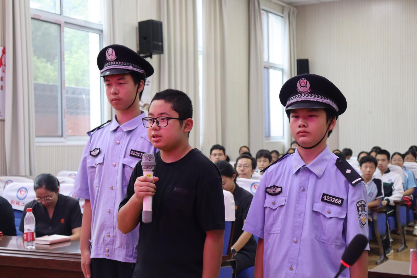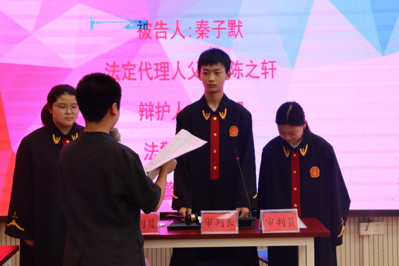 整场模拟庭审层层递进:“审判员”敲击桌面提醒“被告人父亲”如实陈述,“辩护人”起身发表意见时衣角带起微风,当“审判长”宣布“以寻衅滋事罪追究张明刑事责任”,现场瞬间安静下来;而后续增设的法制教育环节中,“审判员”李馨玥同学转向“被告人”的那句追问——“小时候在家你的父母是否会打你?是否会拿东西打你?”——更让不少家长代表默默攥紧了拳头,“被告人”与“父亲”低头忏悔的模样,成了最直观的警示教材。
