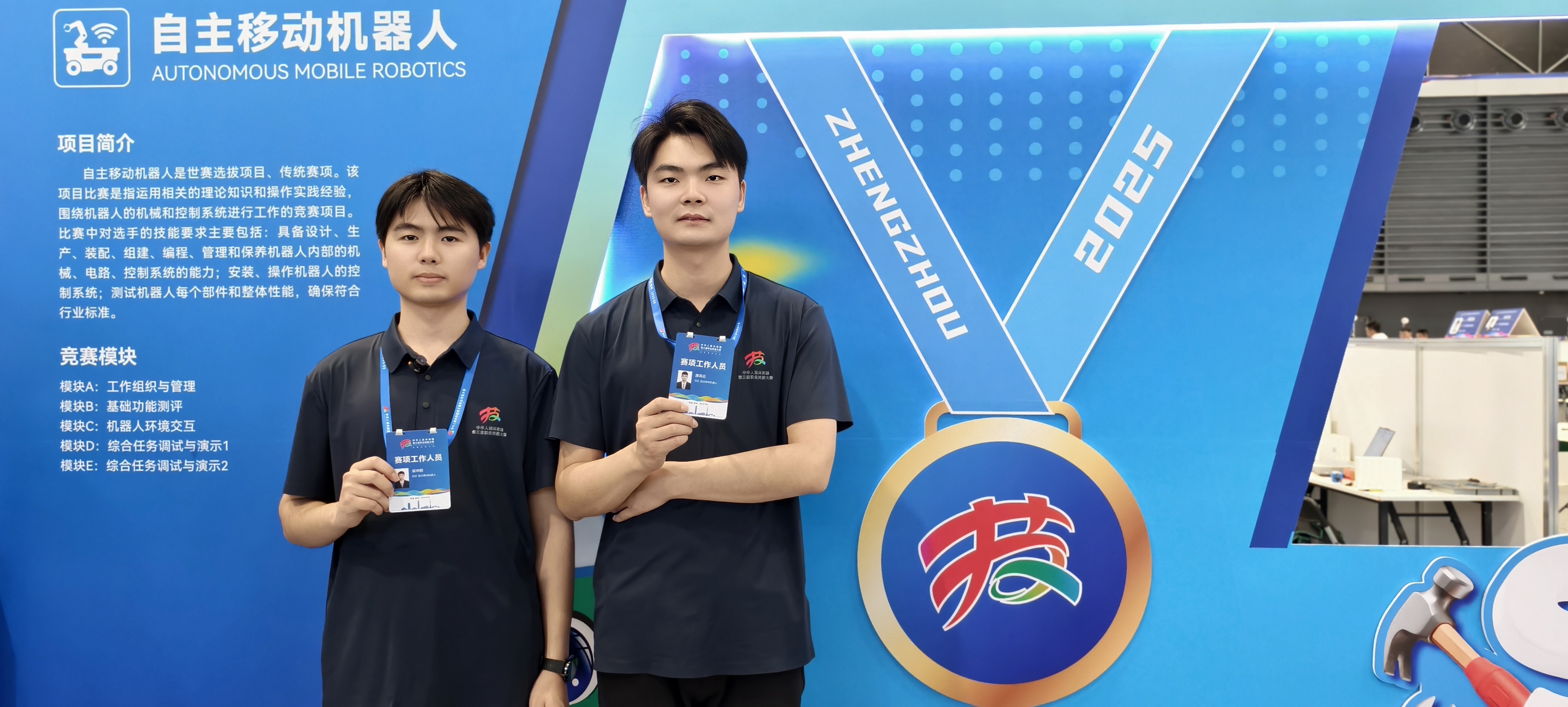 大河网讯2025年9月,第三届全国技能大赛在郑州航空港区火热举行。9月21日,在自主移动机器人项目赛场,第46届世界技能大赛特别赛移动机器人项目冠军侯坤鹏、唐高远格外引人注目,他们以赛场工作人员及指导老师的身份重返赛场。