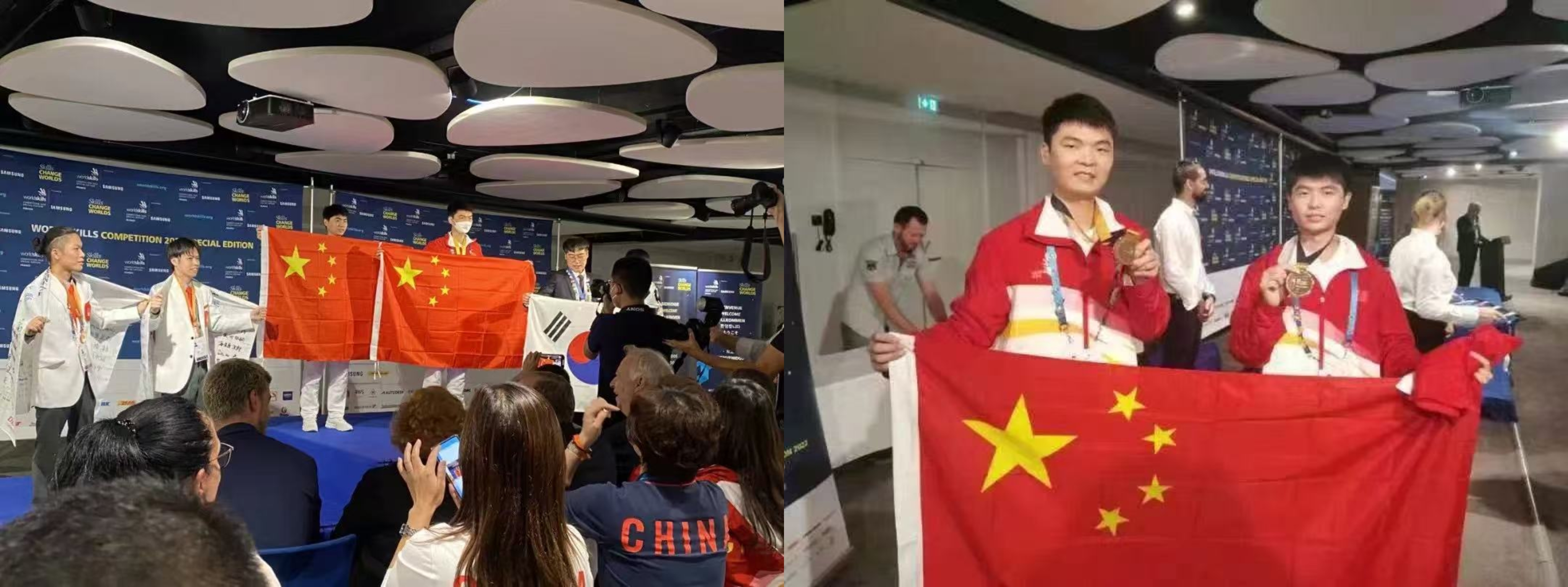 在采访尾声,两人展示了一张特殊合影——2022年世赛颁奖台上的并肩身影与如今指导席上的默契配合。“从追光者到点灯人,变的是角色,不变的是‘技能报国’的初心。”侯坤鹏说。