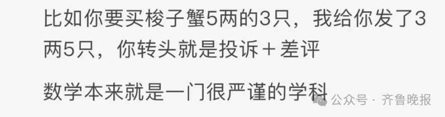 但也有一部分网友支持,认为乘法的一层逻辑还是要明确。“3只5两的梭子蟹和5只3两的梭子蟹,虽然总重量相等,但两者区别很大。”