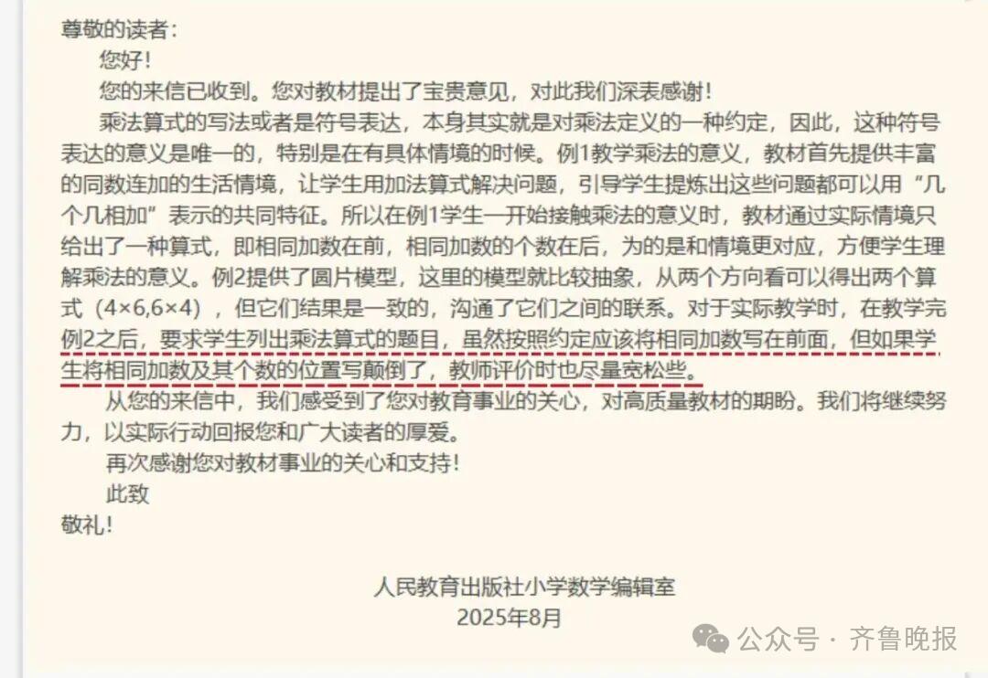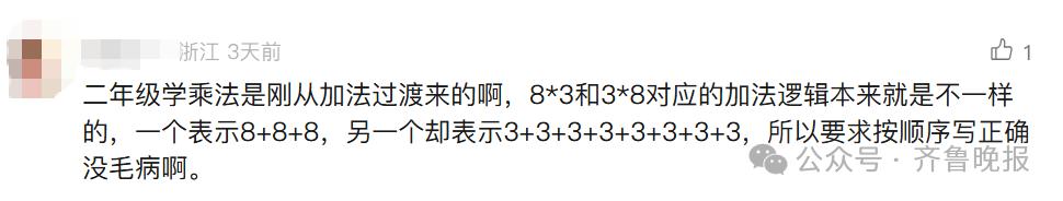 另一位小学数学老师也表示,新学期学乘法后,作业里顺序不对就会判错。