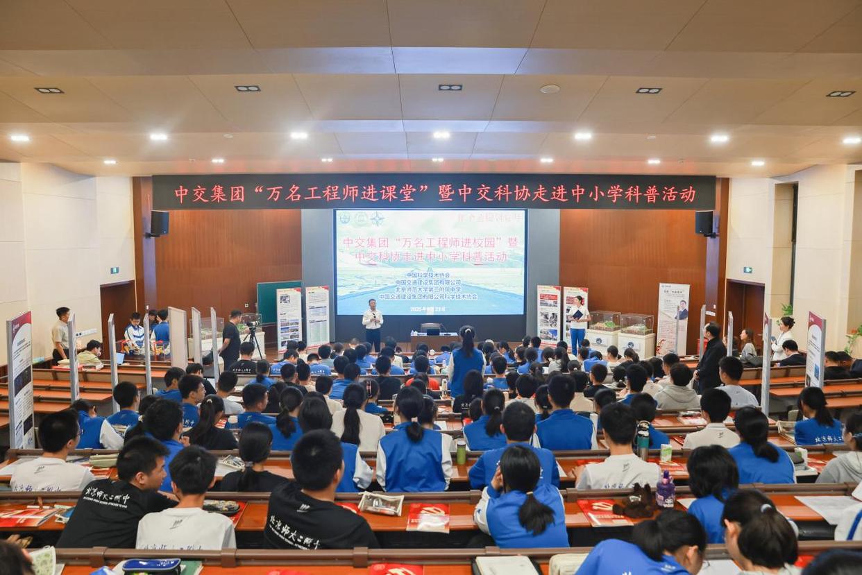 人民网北京9月26日电 (记者 李楠桦)近日,在首个全国科普月期间,由中国科协指导的中交集团“万名工程师进课堂”暨中交科协“国之重器 中国力量”走进中小学科普活动首站在北京师范大学第二附属中学举办。