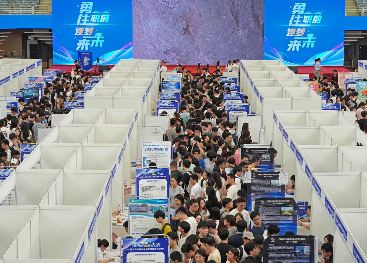 9月26日,“2026届上海高校毕业生秋季校园招聘会暨长三角联合招聘会”在上海交通大学闵行校区举行。逾千家用人单位参加本次招聘会,涵盖集成电路、生物医药、人工智能等多个重点产业,提供约3.5万个用人岗位。