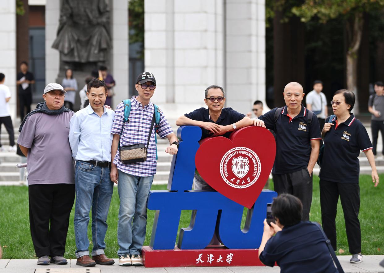 10月2日,天津大学校友在北洋园校区留影。新华社记者 李然 摄
