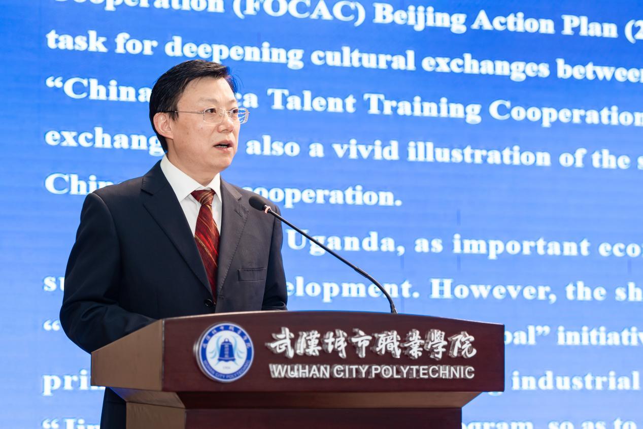 开班仪式上,武汉城市职业学院党委副书记杨爱民代表学校在欢迎辞中,回顾了学校援外教师团队赴乌干达举办汉语培训班的历程,表示要秉持“荆楚技能工坊”项目所倡导的“教随产出、校企同行”理念,精准对接当地实际需求。多年来,学校深耕对非职教合作,从承办“中国武汉—乌干达恩德培职业教育培训项目”,到组建专业团队开发适配课程,始终都在践行扎根当地实际的教育合作。