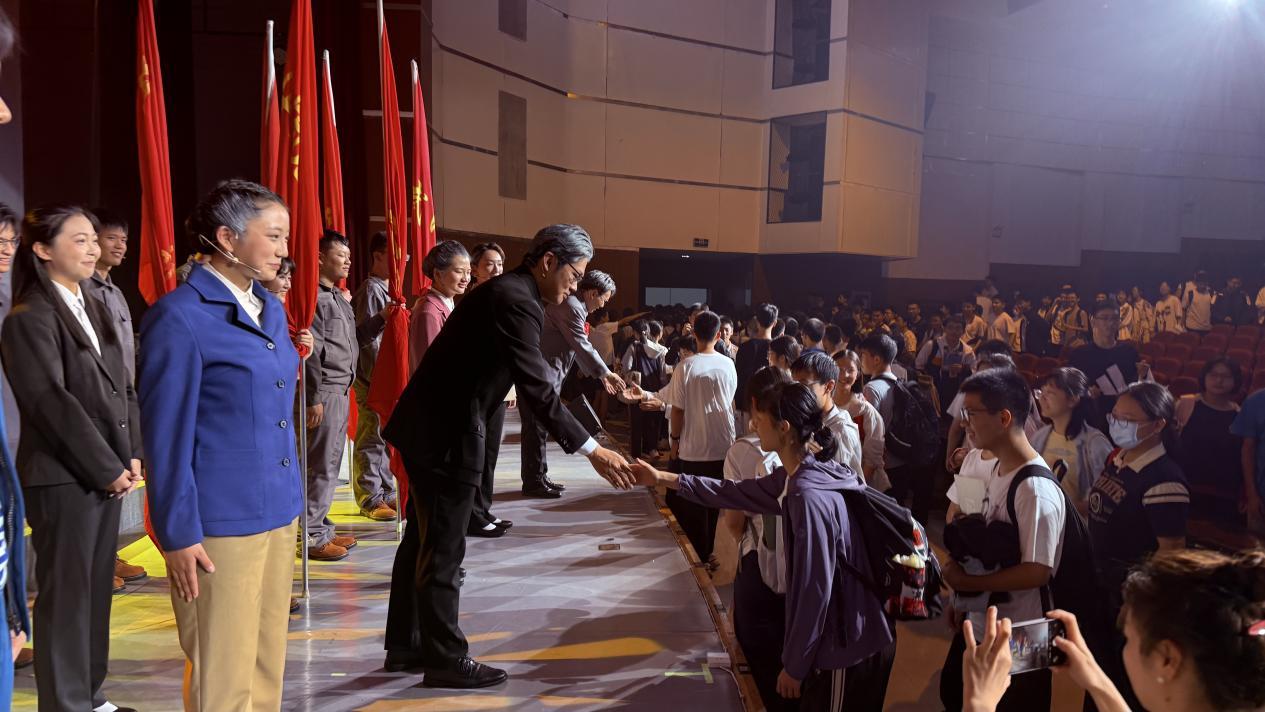 演出落幕,掌声不息。华中师大一附中的学生们自发排成长队,只为与台上的演员们握手、鞠躬、致谢,场面温馨而庄重。