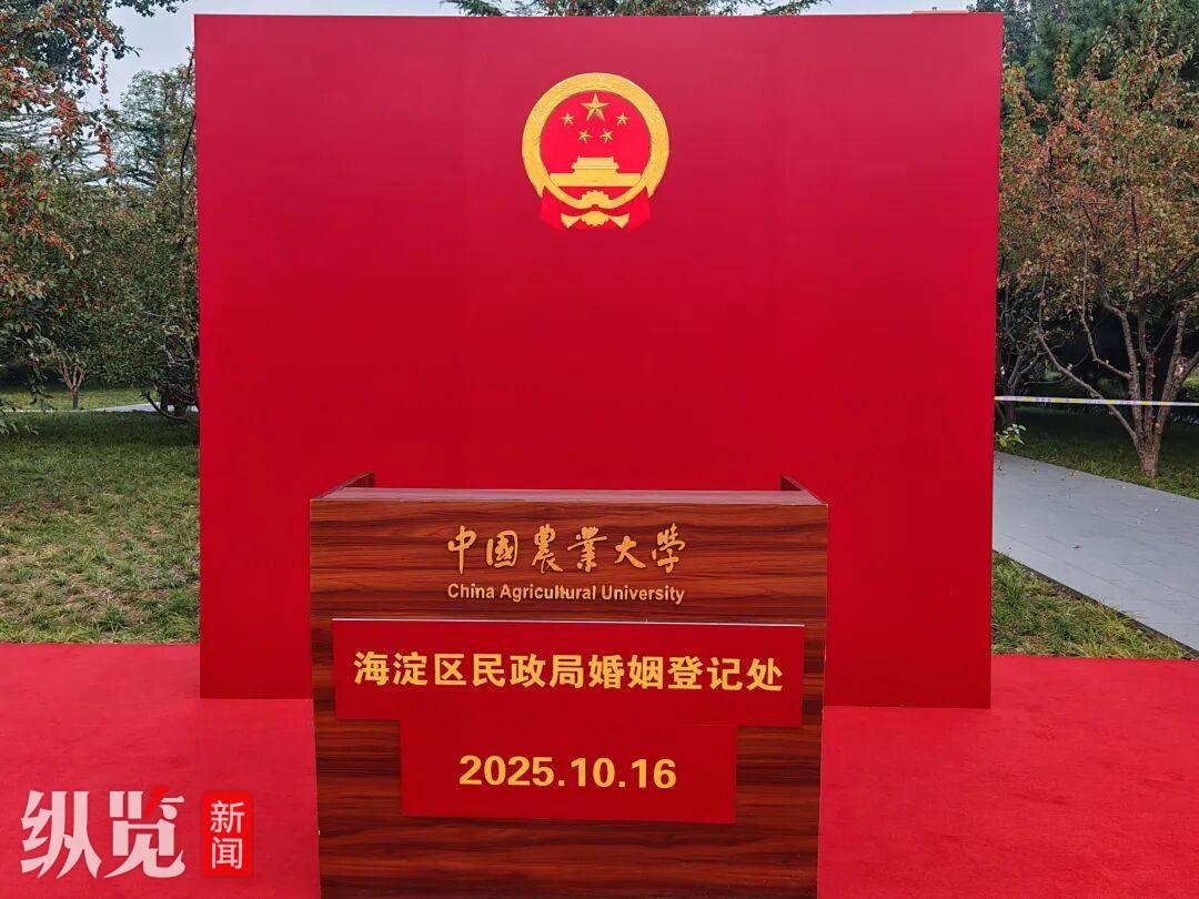 对此,10月16日上午,中国农业大学工会工作人员向纵览新闻表示,由于10月16日正值学校120周年校庆,为给返校校友和在校教职工准备一份特别的纪念,学校联合民政局在校园里设置了这一临时婚姻登记点,有结婚登记意向的适龄教职工校友可以在校内登记领证,赋予这一天双重意义。