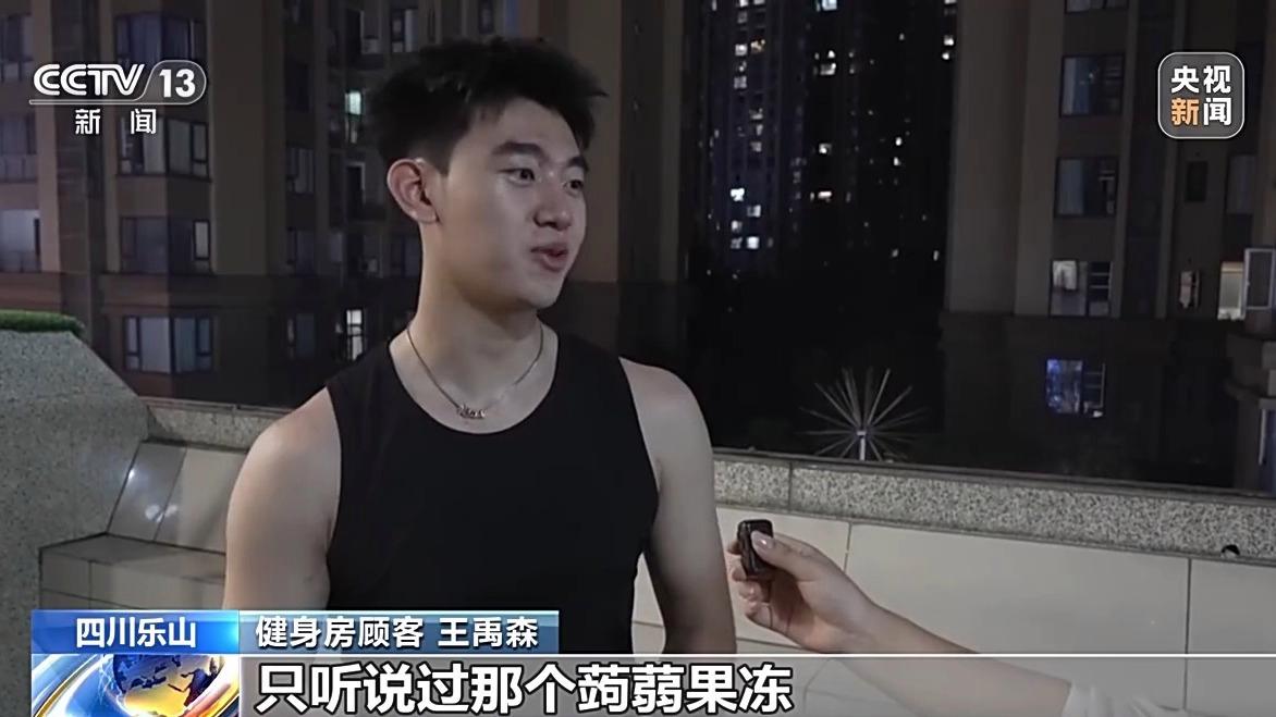 健身房顾客 王禹森:只听说过那个蒟蒻果冻,但是我具体不知道它的原料,魔芋是种食材吧,能做成一种果冻也是挺惊奇的。