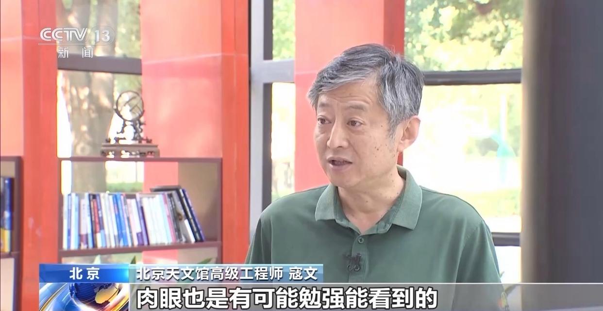北京天文馆高级工程师 寇文:最乐观的预报说,这颗彗星的亮度可能达到两等左右,很容易用肉眼直接看到。常规的预报,这个彗星的亮度可能达不到这么亮,但是应该亮度也在五六等以上,在天气特别好,没有灯光干扰的情况下,肉眼也是有可能勉强能看到的。