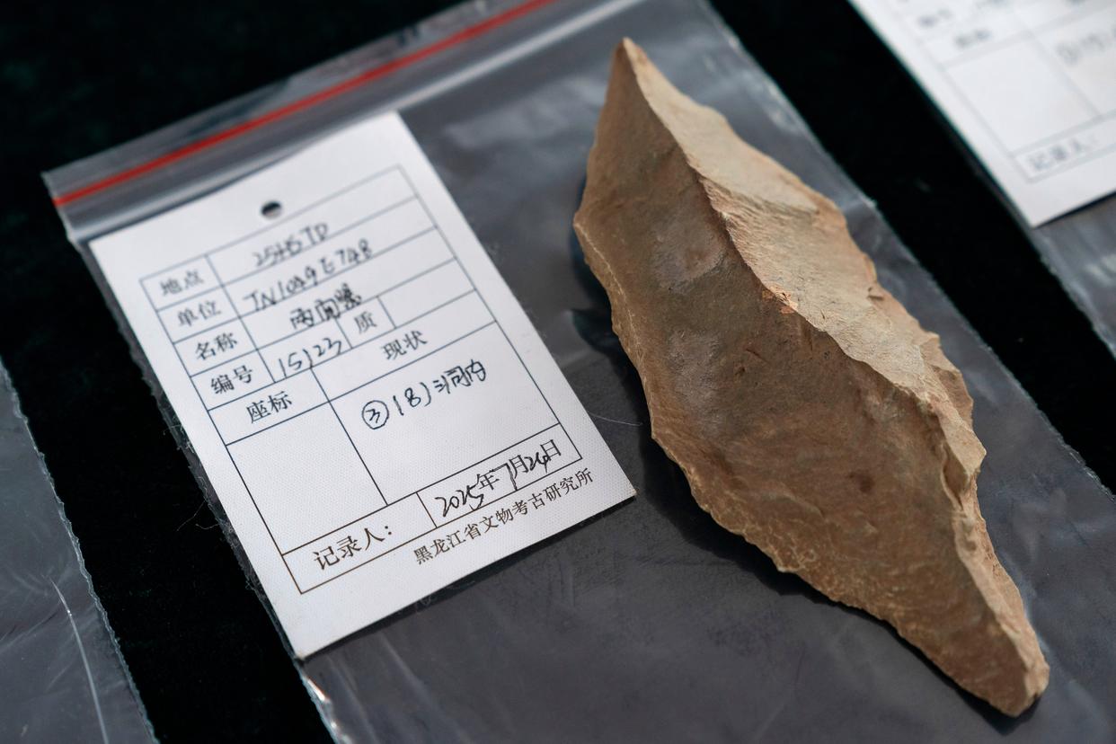 这是10月20日在海林市石河村拍摄的石人洞遗址中发掘出的石器。新华社记者 谢剑飞 摄