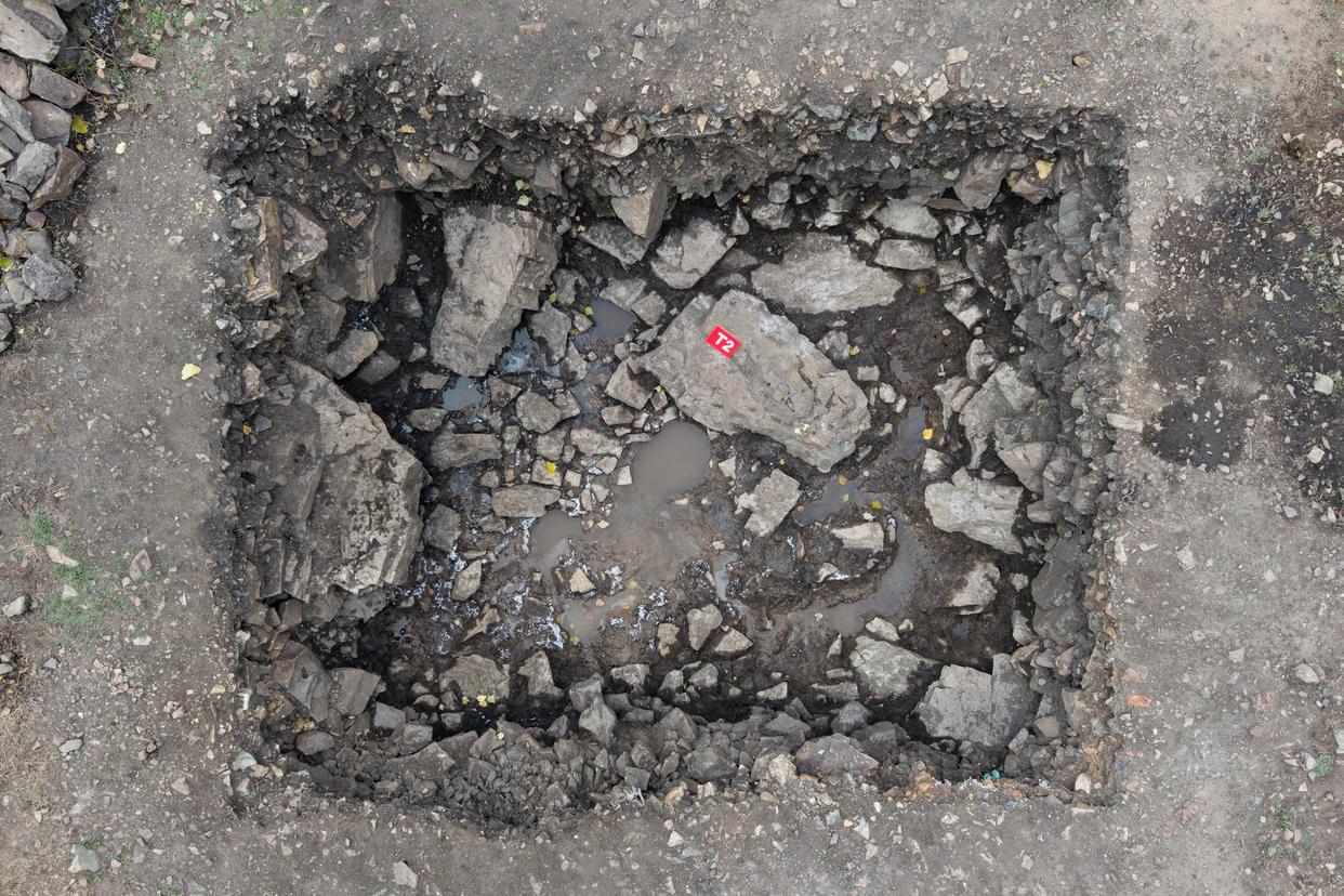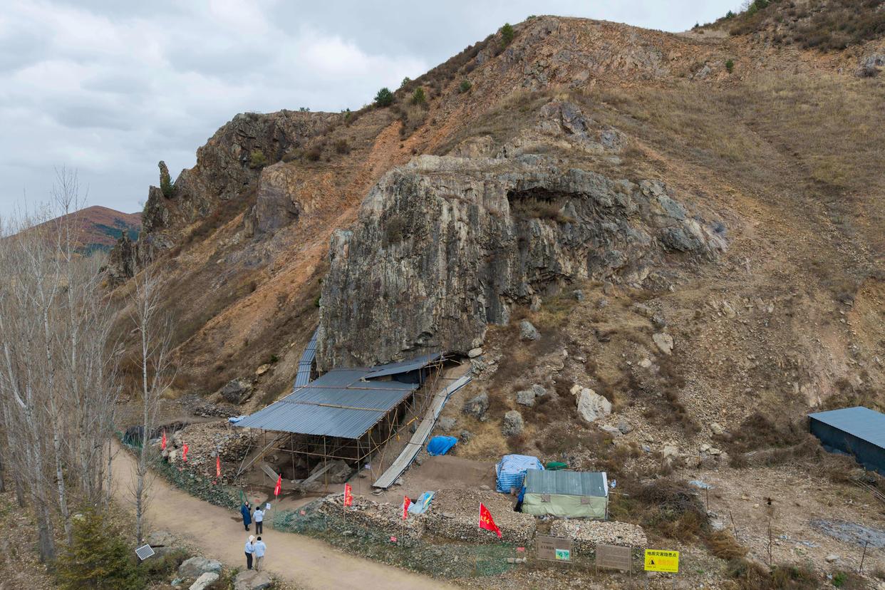 这是10月20日拍摄的位于黑龙江省海林市石河村的石人洞遗址的一处发掘区(无人机照片)。新华社记者 谢剑飞 摄