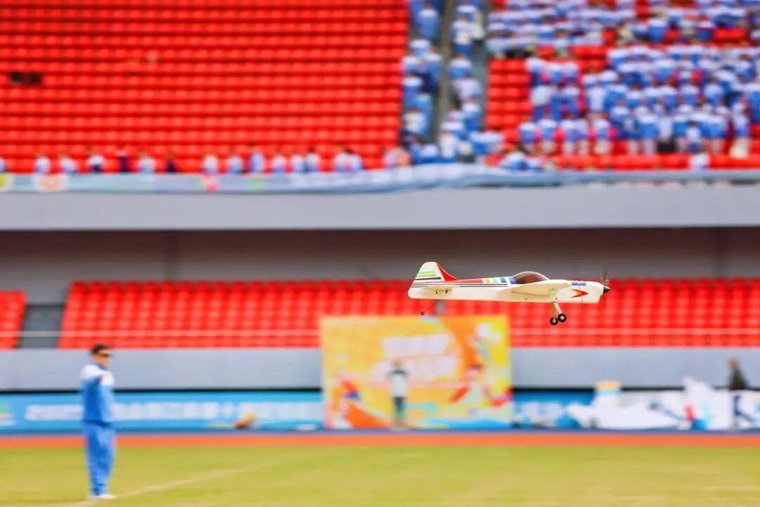 就在不久前结束的2025全国青少年航空航天模型锦标赛中,朱睿拿到了一个全国冠军,昨天在同学们面前,他复刻了比赛中的精彩表现。