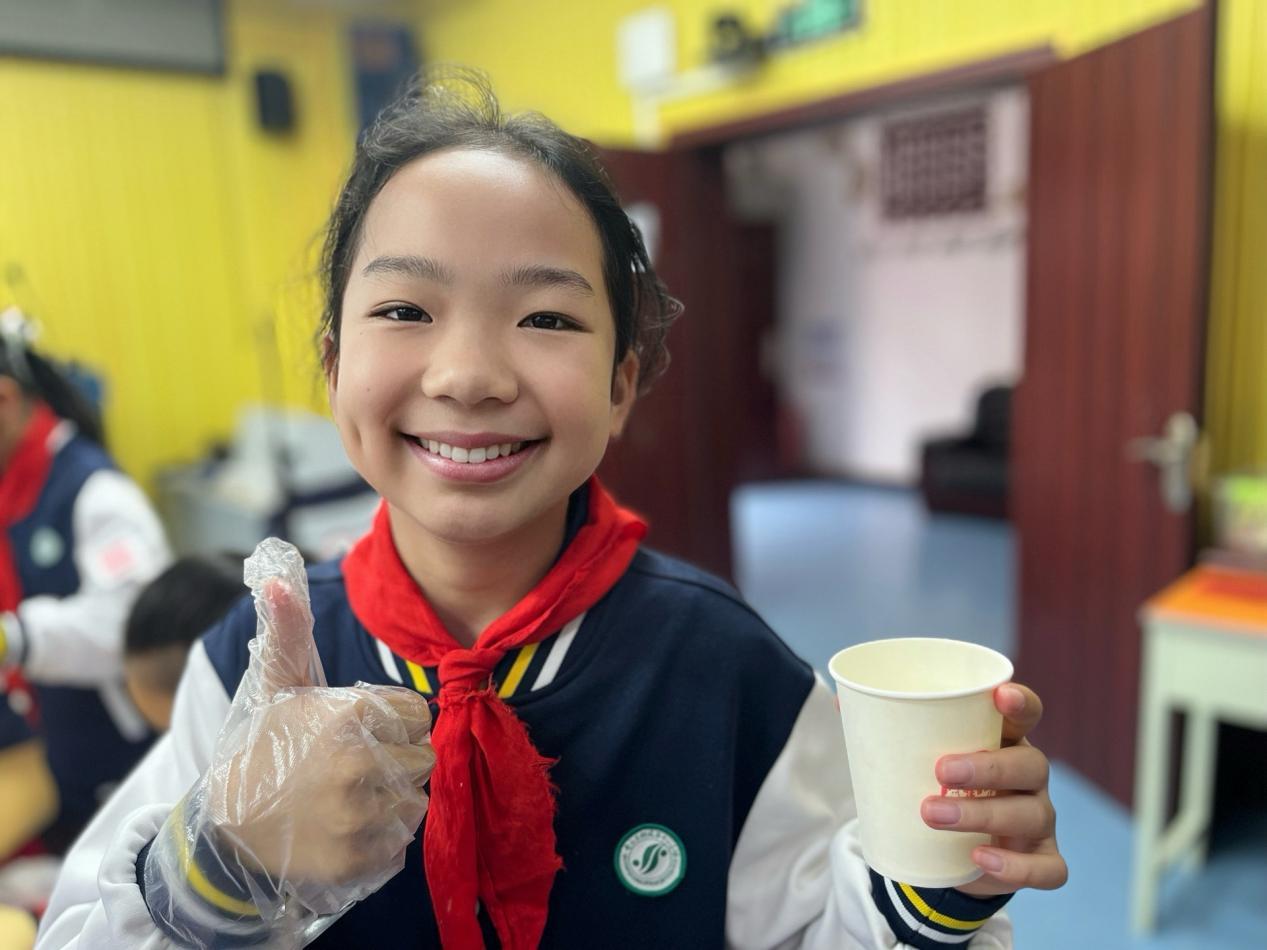 制作环节结束,孩子们又变身为小小“试喝员”,“检验”起自己制作的花茶。当温热的茶被分到手中,孩子们睁大眼睛盯着杯中舒展的花瓣,轻轻抿一口,眼睛笑弯成小月牙,纷纷说:“好香呀!还甜甜的,特别好喝!相信爷爷奶奶们肯定会喜欢的!”