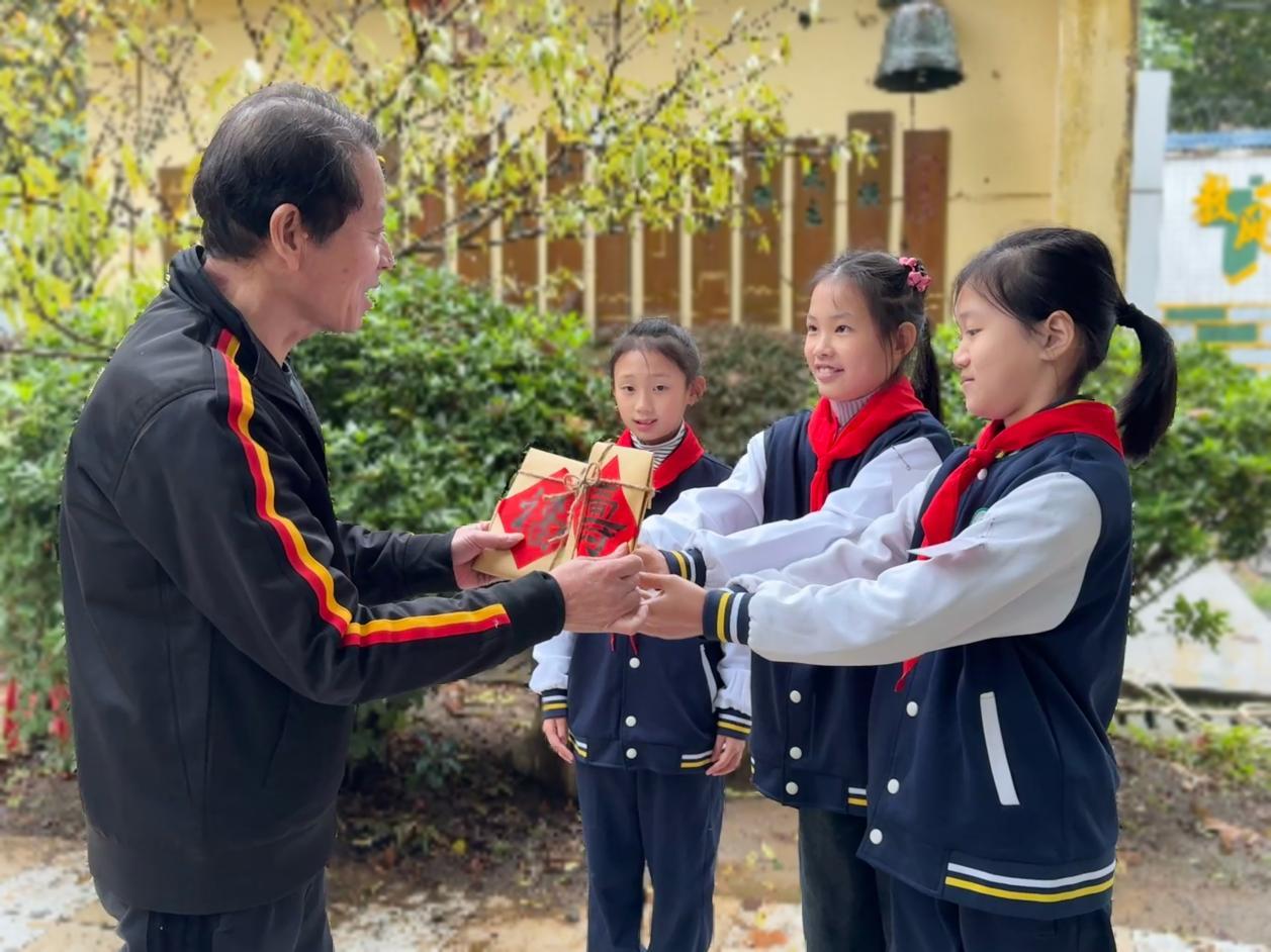 “李老师,这是我们做的花茶包,愿您冬天喝了温暖常相伴!”捧着亲手制作的“作品”,孩子们来到退休老教师身边,满怀敬意地送上茶包。李老师笑容满面地看着孩子们,眼里满是幸福。小小的茶包传递着温暖,师生间的温情在这一刻静静流淌,也让中华“敬老”文化在互动中悄悄传承。