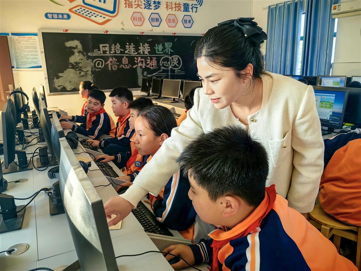 带领孩子们走进编程世界的,是青年数学教师李梦文。她大学主修信息技术,为了教好这些农村娃,她重新温习C语言、Python及网页设计等专业知识,精心筛选优质网络课程,不断拓展教学资源。在编程教学中,她采用“趣味启蒙+项目实践”的双轨模式,将抽象的代码转化为好玩的游戏与生动动画,引导孩子们在创造中思考,在破解难题中成长。