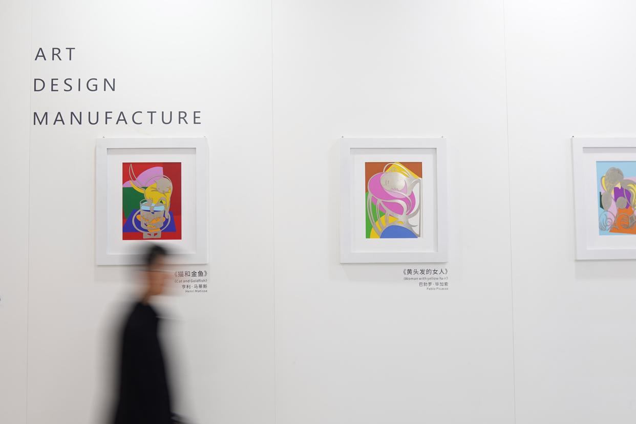 11月6日,一名参观者路过华工科技激光科技馆内由激光技术二次创作的绘画作品。新华社记者 戴明轩 摄