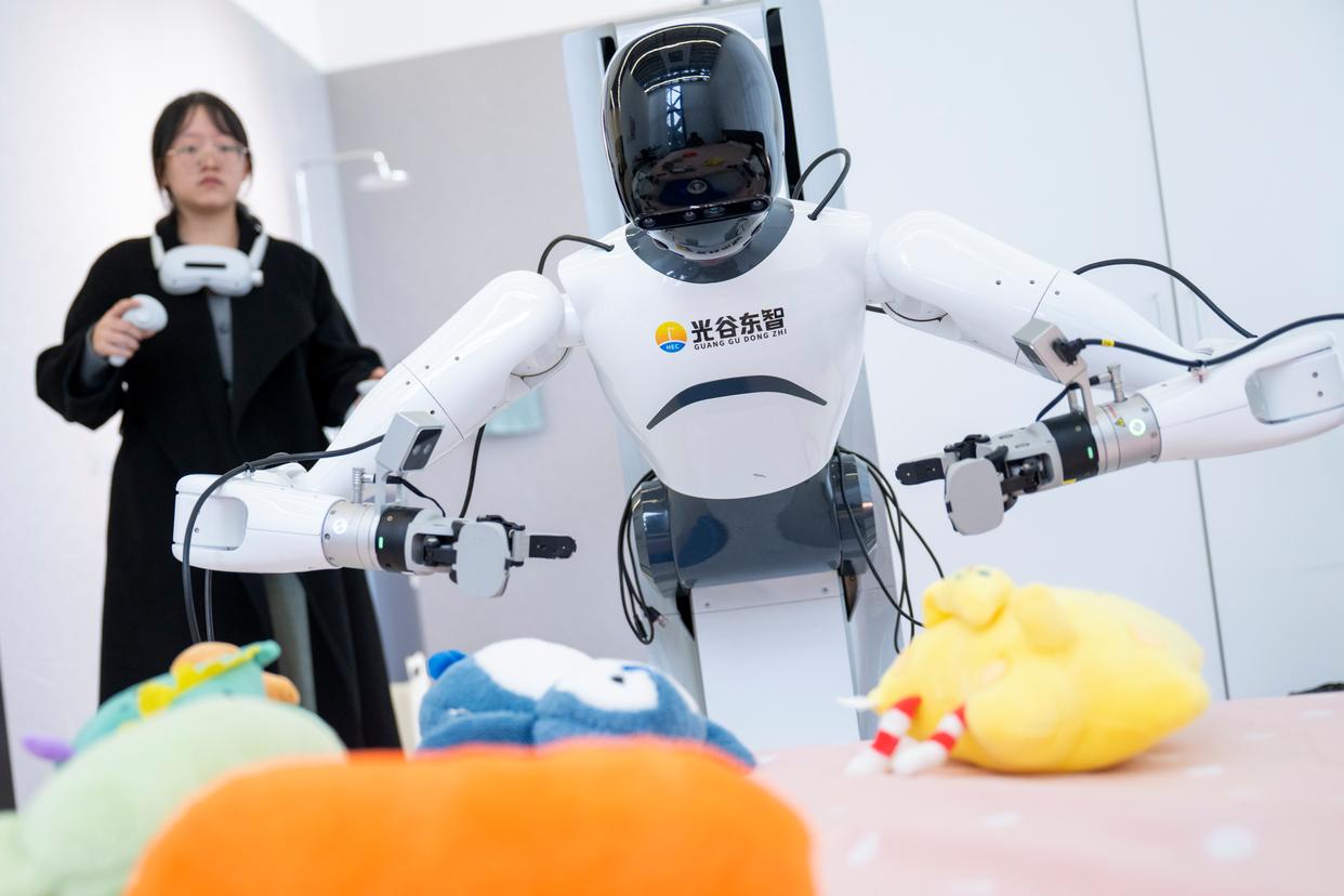 11月6日,在湖北人形机器人创新中心,人形机器人数据采集员在进行数据采集工作。新华社记者 伍志尊 摄