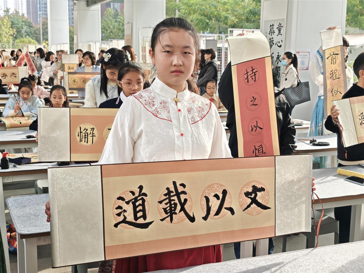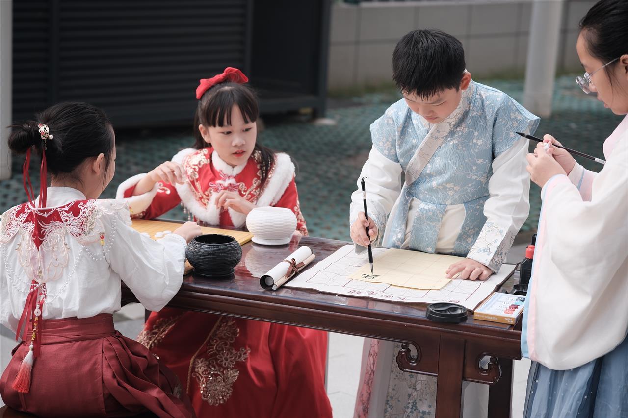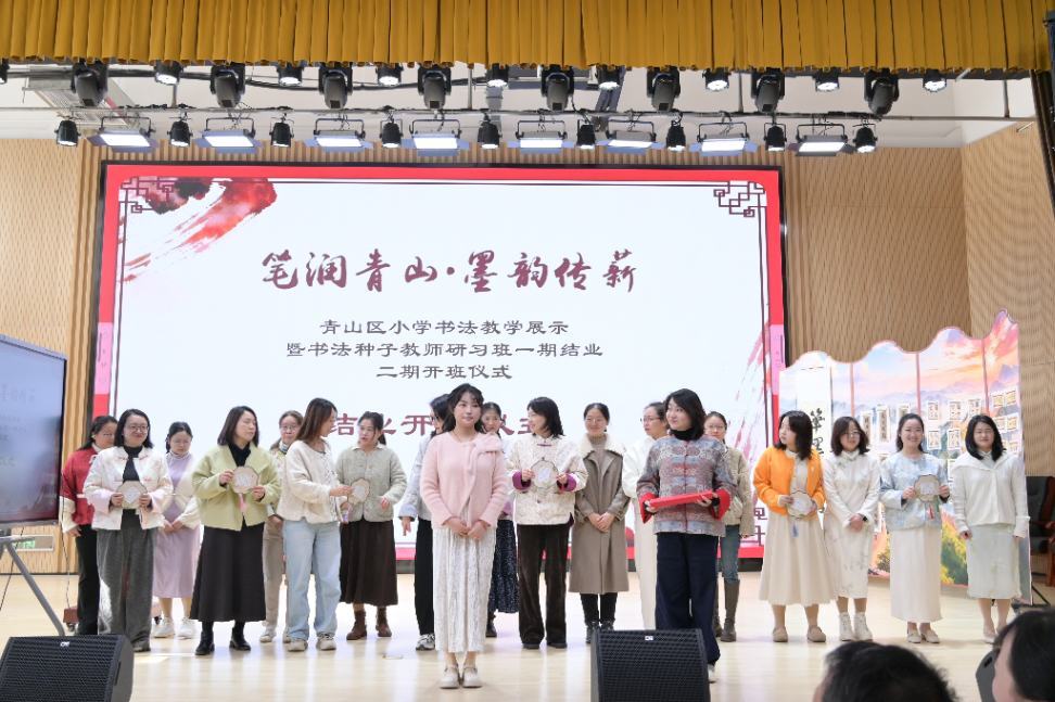 作为承办方,红钢城小学不仅营造了浓厚的书法氛围,还设置了“琴棋书画”展示、汉服书法小使者等特色环节,让传统文化浸润人心。近年来,青山区通过组建研修班、开展优质课展示、举办学校特色活动等,推动书法教育常态化发展。此次活动既是成果检阅,更是新起点,未来青山区将以更多元的形式深耕书法教育,让墨香伴成长、文脉代代传。