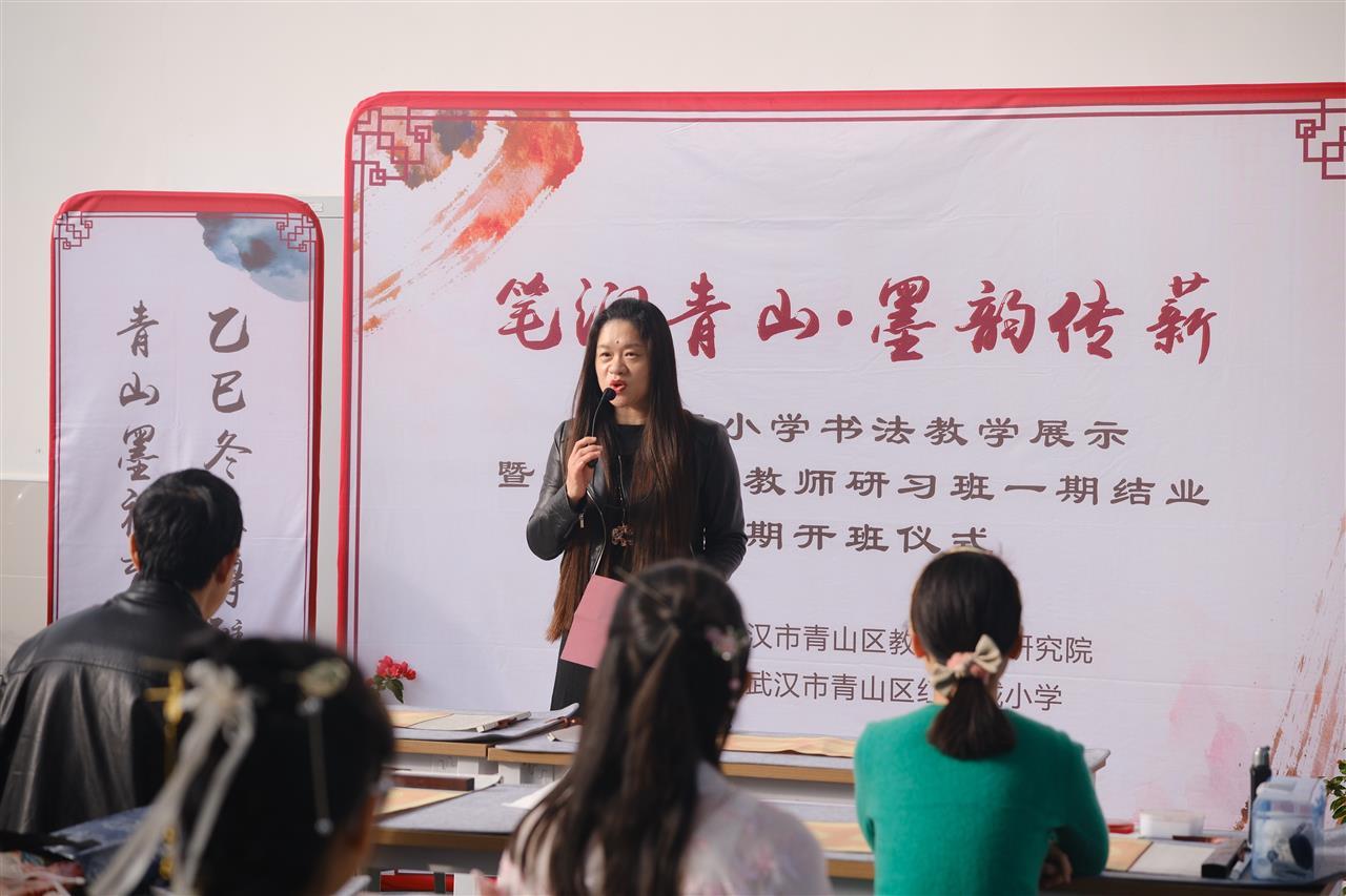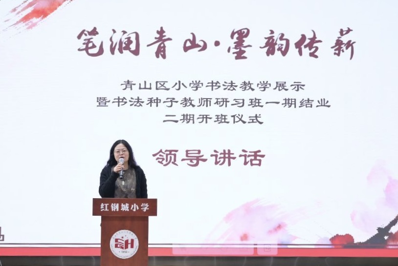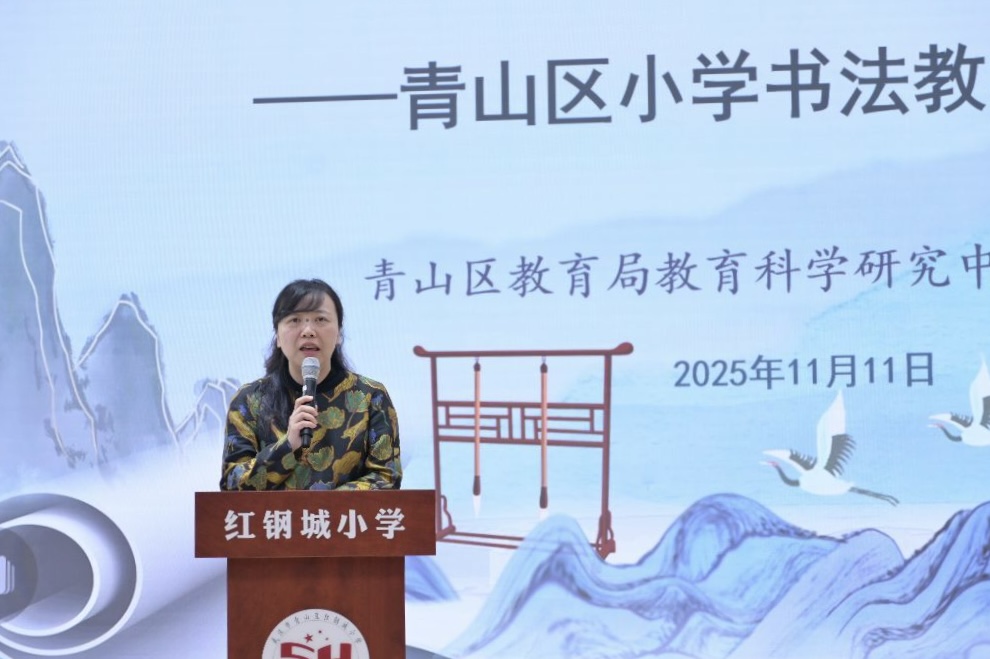青山区教育科学研究院副主任柳云分享了全区小学书法教育的成长历程,从师资培养到课堂实践,从校园普及到特色发展,全面展现了青山区构建书法教育人才梯队的坚实举措。