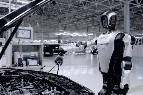人形机器人进入工厂作业