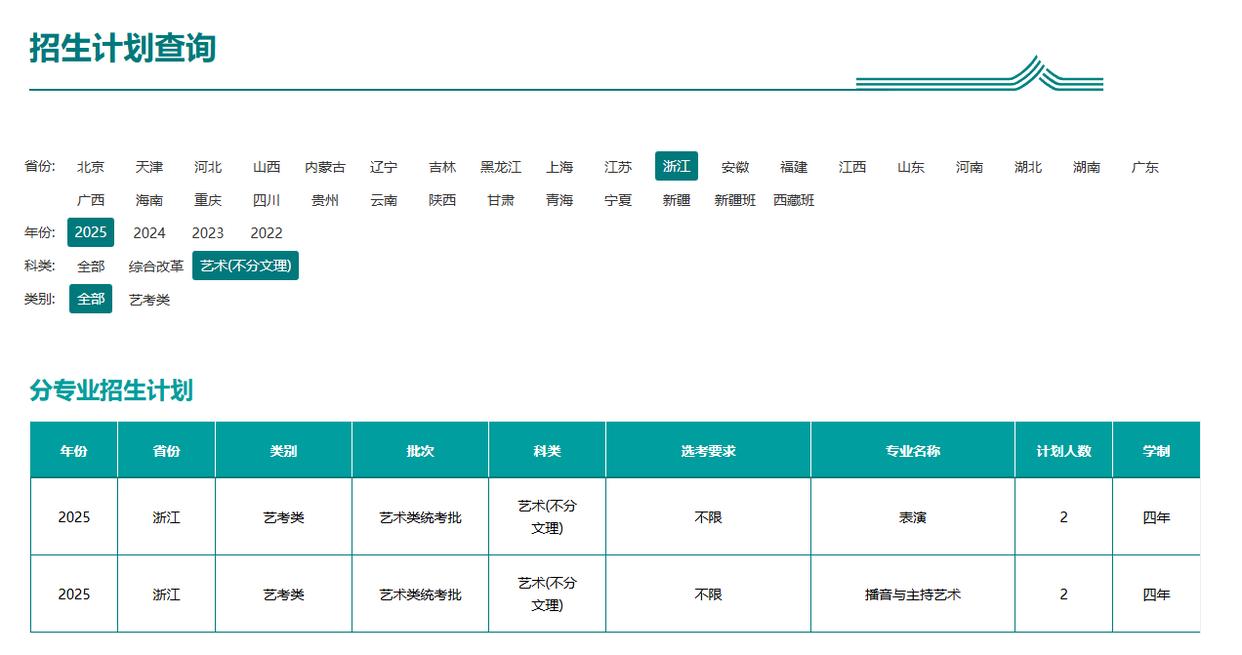 同济大学2025年艺术类本科招生专业有美术类、音乐类、表演类,在浙江均有招生计划。