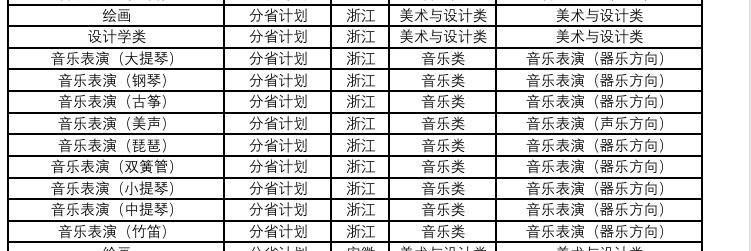 中国人民大学2026年艺术类招生专业与省级统考子科类对照表分省计划浙江部分 图源中国人民大学招生网