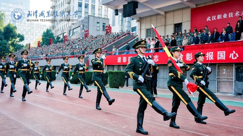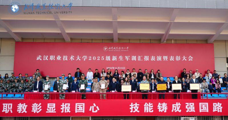 冬阳和煦,旌旗猎猎。11月15日下午,武汉职业技术大学2025级新生军训汇报表演暨表彰大会在光谷校区田径场盛大举行。