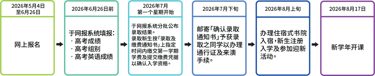 注:以上日期将根据实际情况修订,考生须适时留意澳门理工大学网页获取最新入学资讯。