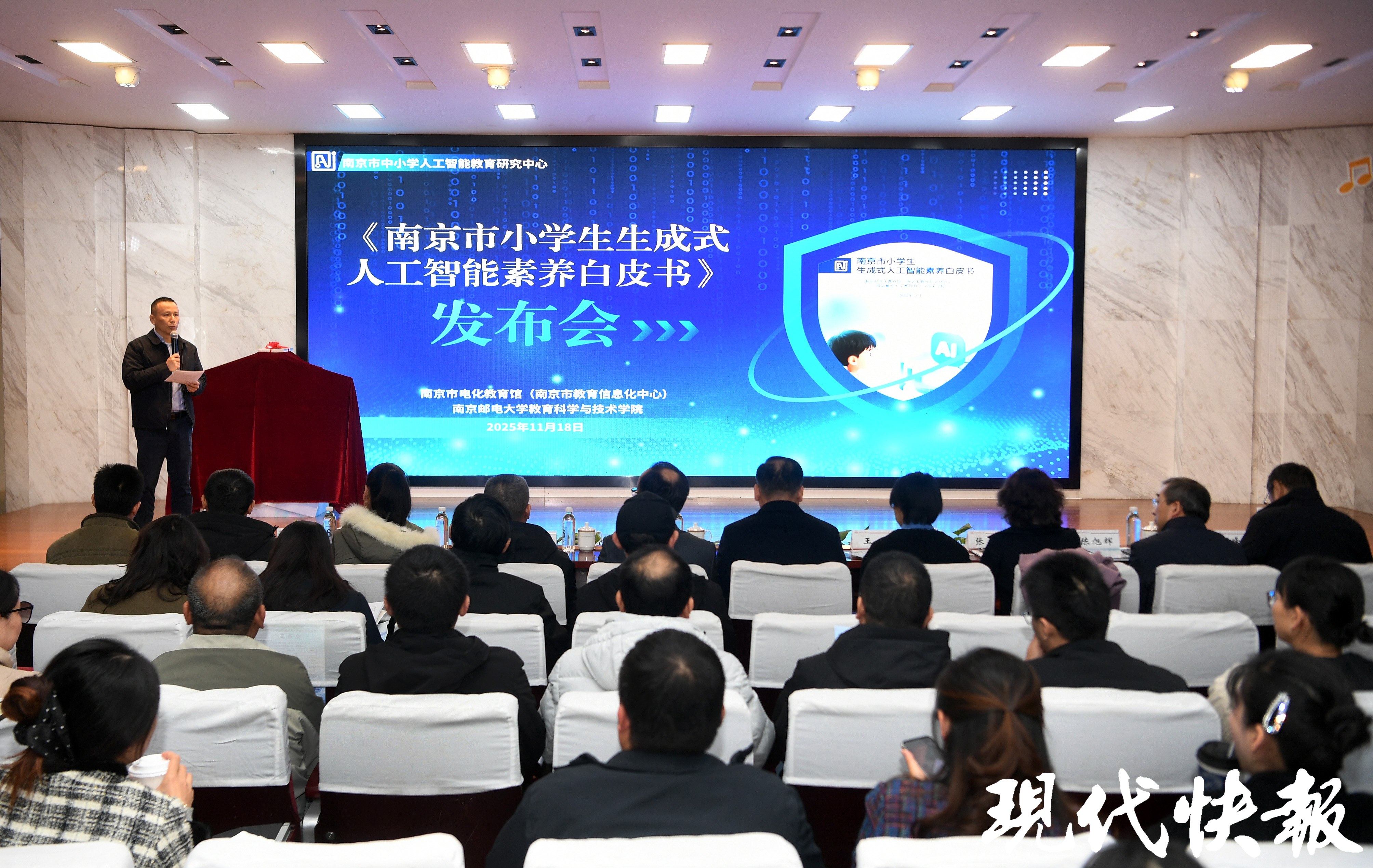 南京市的小学生究竟是如何使用生成式人工智能(GenAI)的?有了生成式人工智能,是不是小学生就不想自己写作业了?11月18日,南京市电化教育馆(南京市教育信息化中心)与南京邮电大学教育科学与技术学院共同编写的《南京市小学生生成式人工智能素养白皮书》在南京市金陵中学实验小学发布。这也是全国首份专门针对小学生的生成式人工智能素养白皮书,对推动中小学人工智能教育纵深发展具有重要的参考价值,为守护教育根本、塑造负责任的AI教育未来赢得了先机。