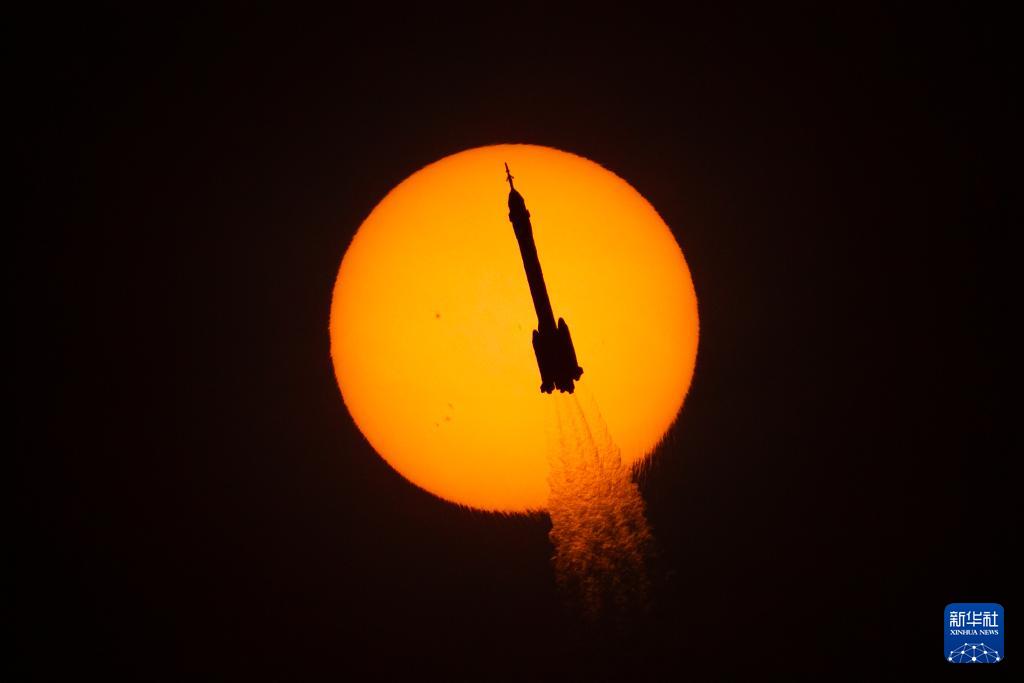 这是11月25日使用日珥镜拍摄的火箭凌日瞬间。11月25日,搭载神舟二十二号飞船的长征二号F遥二十二运载火箭,在酒泉卫星发射中心点火发射。神舟二十二号飞船与长征火箭成功分离并进入预定轨道,发射任务取得圆满成功。这是中国载人航天工程第一次应急发射任务。新华社记者 张斌 摄