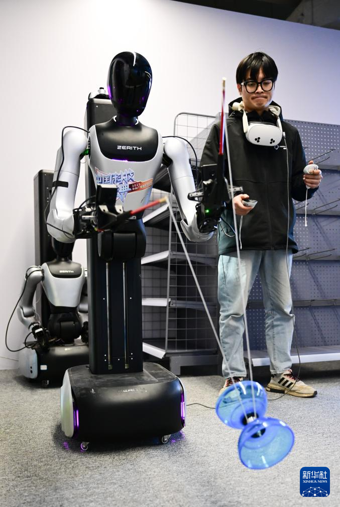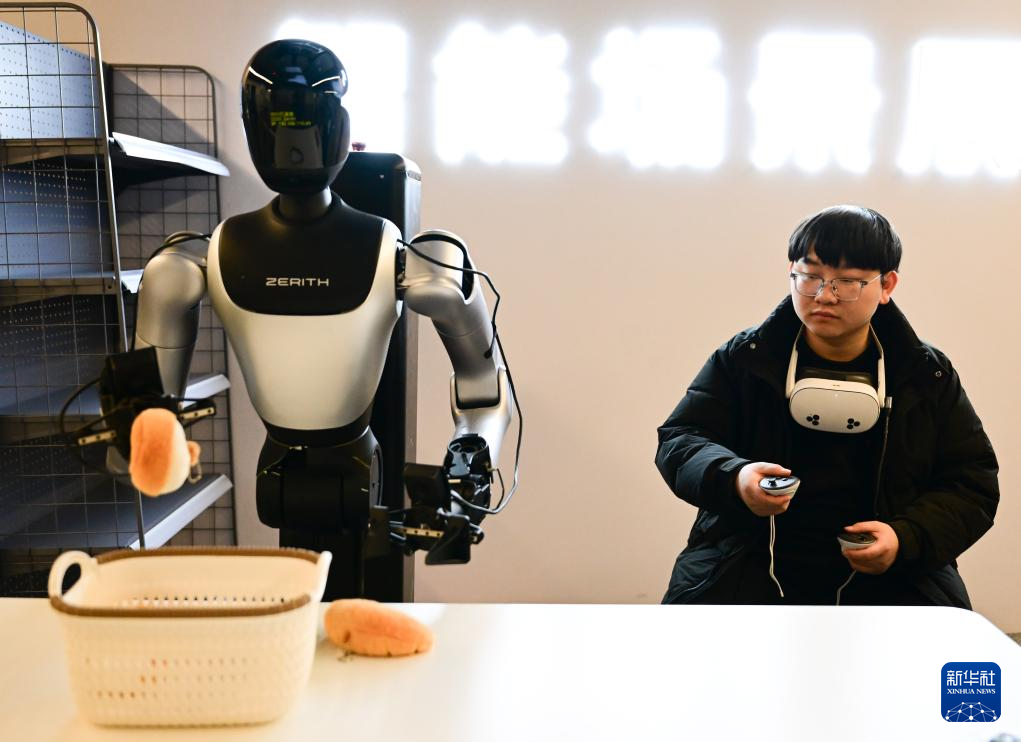 11月25日,在合肥零次方机器人有限公司,工作人员训练机器人抖空竹,用于数据采集。新华社记者 周牧 摄