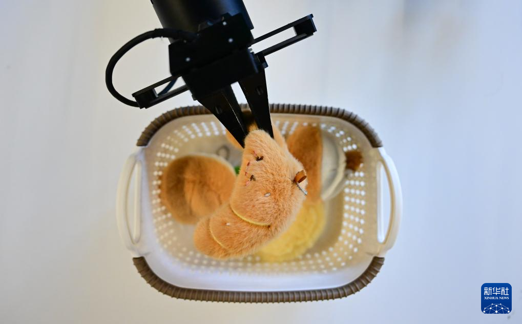 11月25日,在合肥零次方机器人有限公司,机器人训练夹取物品,用于数据采集。新华社记者 周牧 摄