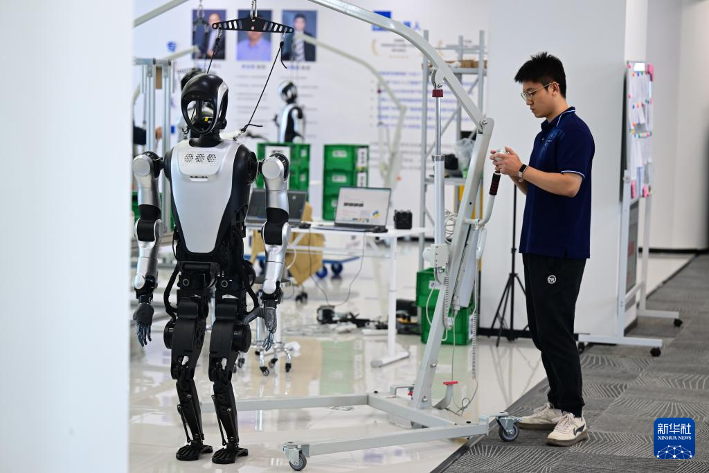 10月24日,在合肥乐聚机器人技术有限公司,工程师在实验室内调试机器人。新华社记者 周牧 摄