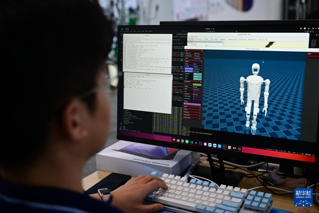 10月24日,在合肥乐聚机器人技术有限公司,工程师将代码在仿真软件上进行模拟。新华社记者 周牧 摄