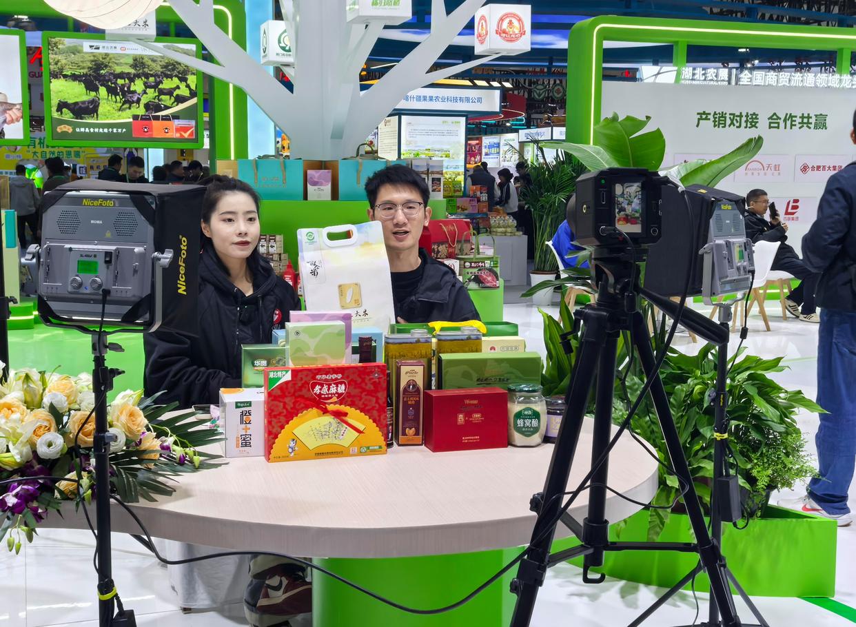 2025湖北农业博览会上,主播正在推介农产品。新华社记者 田中全 摄 作为农业大省,湖北农产品品类繁多、水产资源丰富,粮食总产量连续12年稳定在500亿斤以上,淡水鱼、生猪、蔬菜等产量常年稳居全国前列。凭借扎实的产能优势,湖北正成为全国农产品消费市场的重要供应基地。