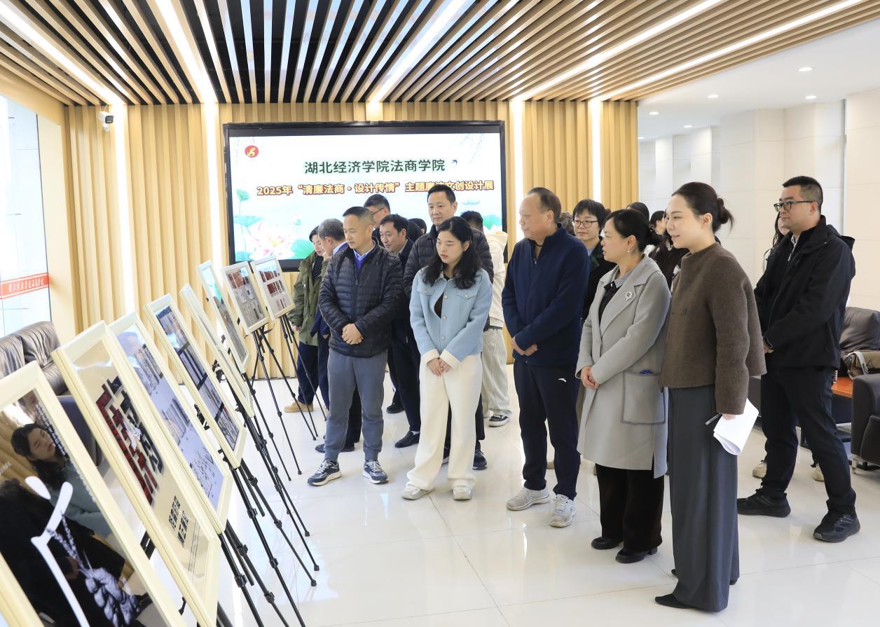 当廉洁“清风”遇上艺术创意,会碰撞出怎样的火花?12月1日,湖北经济学院法商学院“清廉法商·设计传情”廉洁文创成果展正式开展。法商楼一楼大厅化身廉洁文化展示空间,吸引众多师生驻足欣赏、拍照交流,在校园中绘就了一幅可观可感的“清廉画卷”。