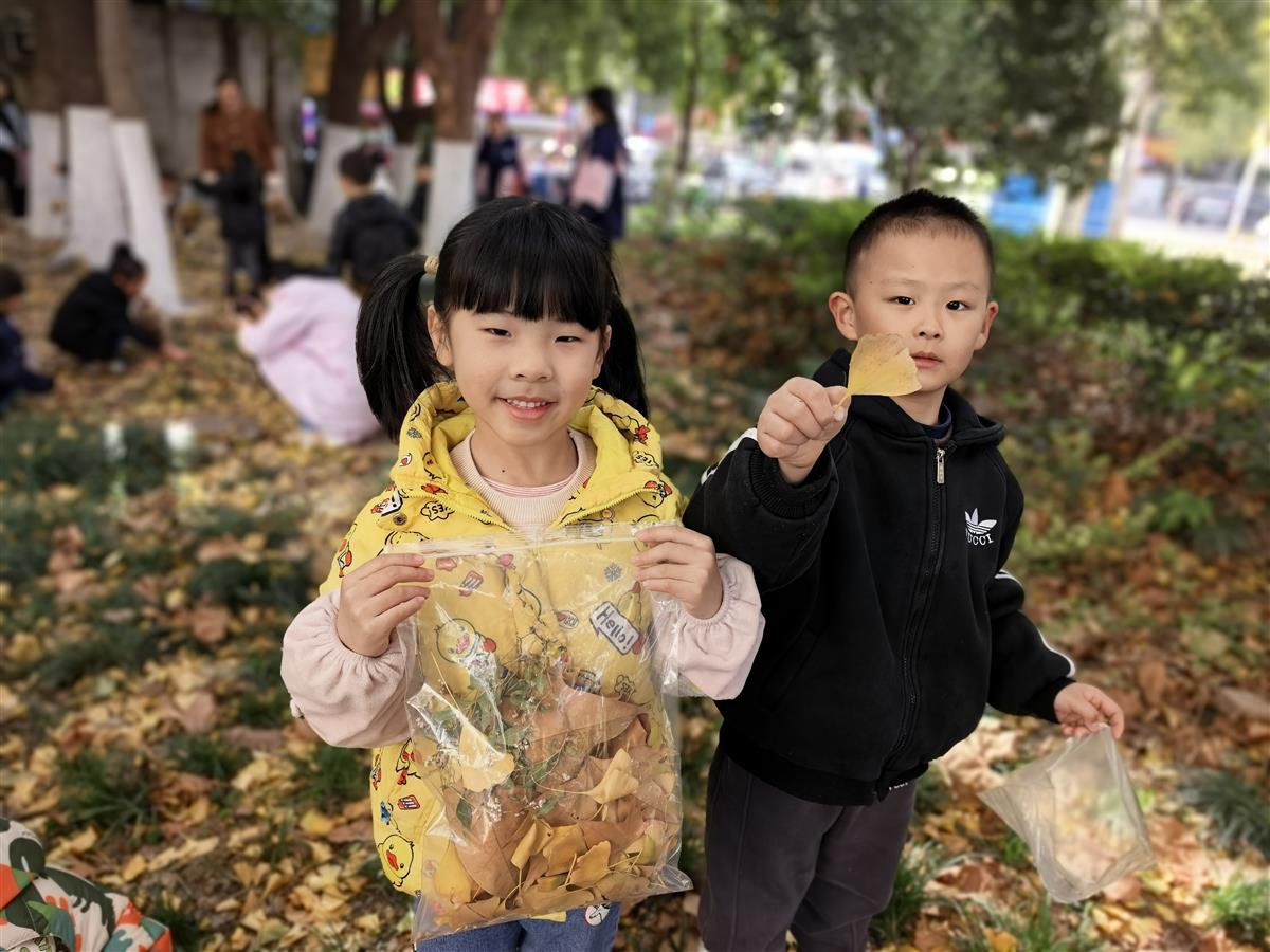 今年的秋意格外绵长,大自然依旧留存着满满的秋日韵味,层林仍染丹黄,草木未失清润,正是捡秋的好时候。依托公园自然资源,孩子们化身“小小捡秋员”,跟着爸爸妈妈走进公园。金黄的银杏叶、火红的枫叶、形态各异的小树枝。大家一边捡一边分享发现:“这片叶子边缘有锯齿!”“树枝弯弯的像小滑梯!”老师顺势讲解叶片生长、季节变化的小知识,家长们也跟着孩子一起观察、讨论,让公园变成了一堂生动的亲子自然课堂。