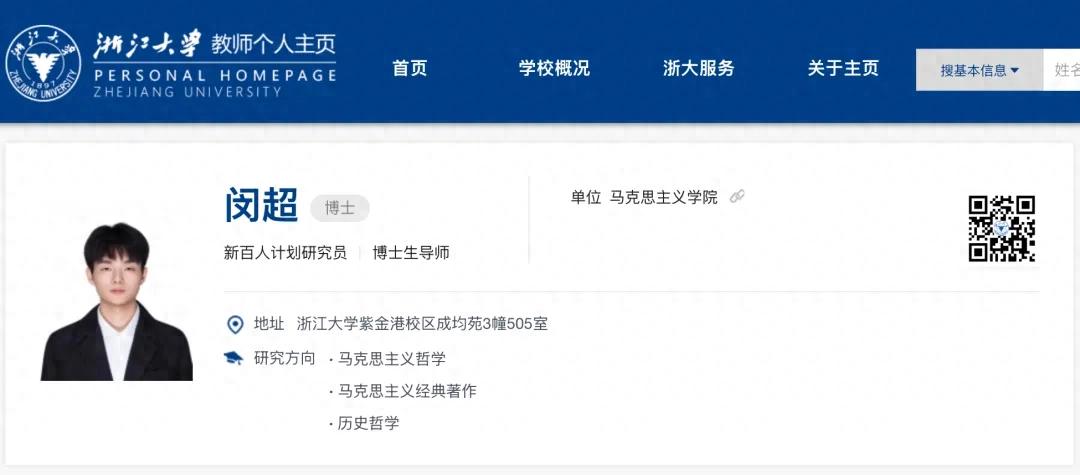 据浙江大学官网信息更新,26岁的闵超已成为浙江大学马克思主义学院“新百人计划”研究员、博士生导师。