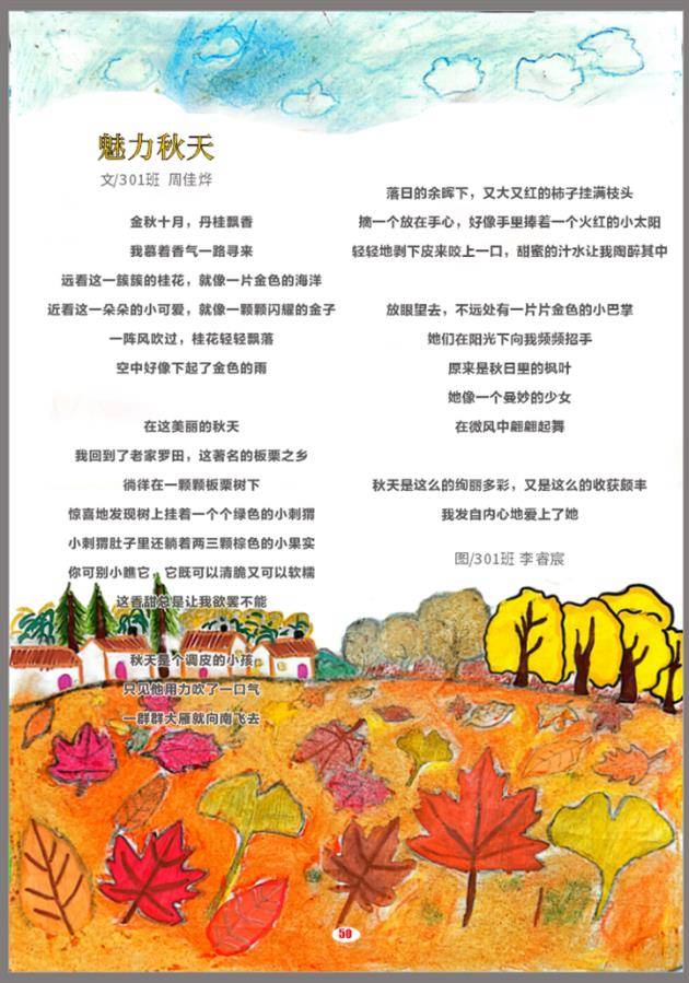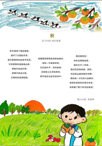 小小诗人,用文字定格秋日浪漫。孩子们拾起画笔,用稚拙的笔触勾勒枫叶的火红、银杏的金黄;以纯真的诗句记录秋风的呢喃、硕果的甜香。“诗中有画,画中有诗”不再是书本里的文字,而是他们与自然对话的真实写照。