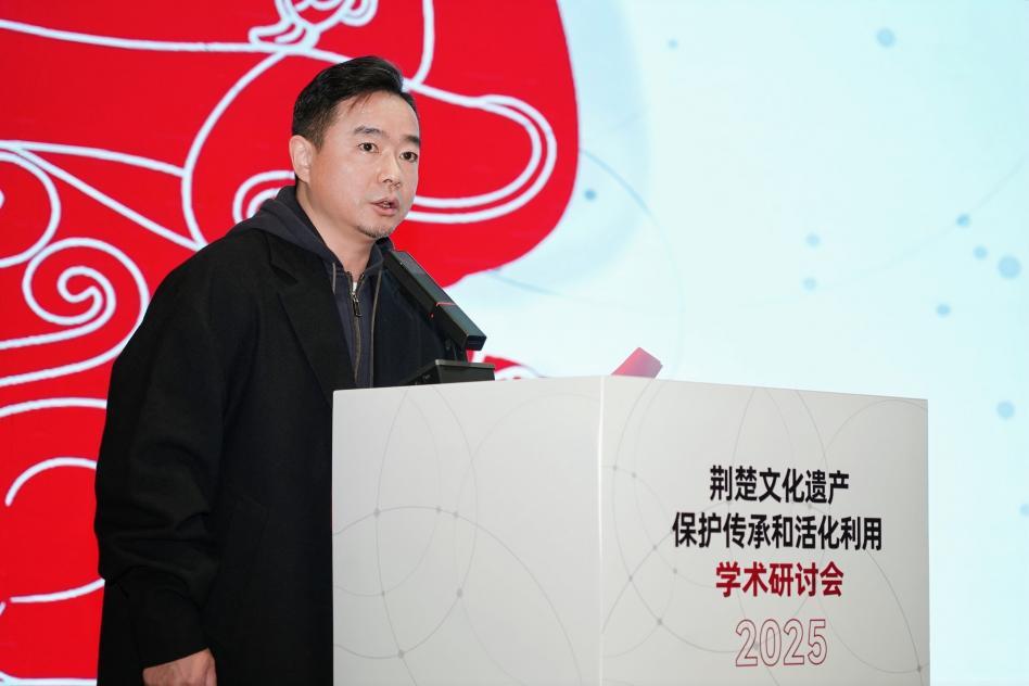 湖北美术学院党委副书记、院长周峰在致辞时表示,学校坚持以“以艺术为媒、以创新为核”的核心理念,深入推动荆楚文化遗产的保护、传承与活化。他指出,作为根植荆楚大地的艺术院校,湖北美术学院将充分发挥多学科交叉优势,深耕楚艺术符号解码、非遗数字化保护等领域,致力于让文化遗产从历史中“走出来”、在生活中“活起来”、在传播中“火起来”。他强调,文化遗产的保护与活化,贵在“以古人之规矩,开自己之生面”,必须以敬畏之心守护文明根脉,以创新思维激活遗产价值,以开放姿态构建传播体系。他表示,期待与各界同仁携手并肩,共同推动构建文化遗产系统性保护与创新性发展的新格局。