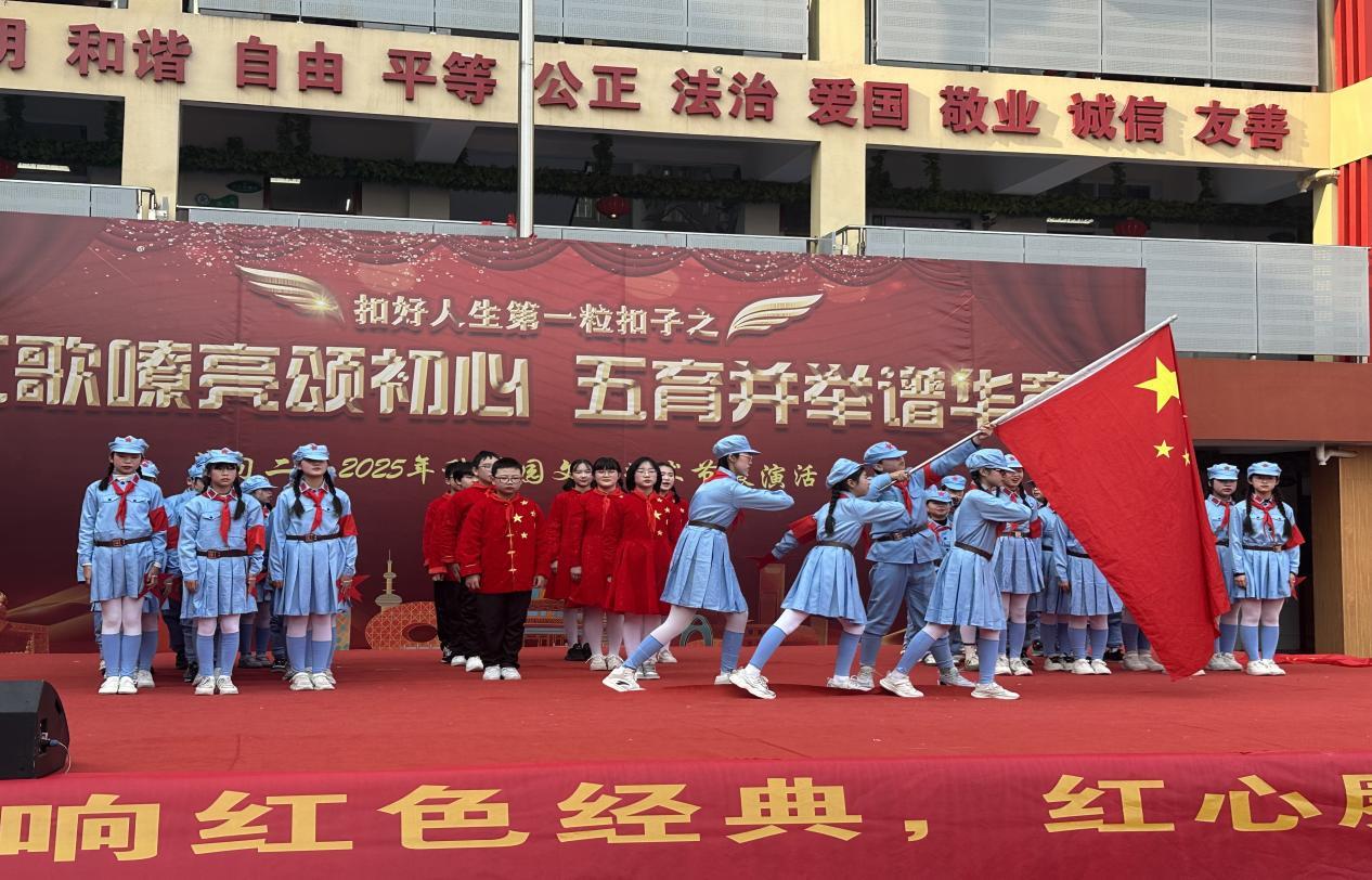 第二篇章“少年志远”转向昂扬向上的青春宣言。一(1)班《红红的太阳》充满希望,二(2)班《童心向党》清澈坚定,二(3)班《说唱中国红》童趣不失雅致,五(2)班《红星闪闪》更是以激昂的旋律,展现了革命精神在新一代少年心中的传承与闪耀。