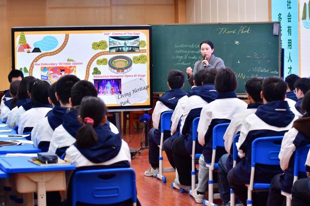 武汉大学附属中学老师卜雅伟基于选择性必修一Unit 3 Project Create your own ideal theme park(第三单元-项目学习-打造属于你自己的理想主题公园),呈现了一节以“Sell Your Own Theme Park(推广你自己的主题公园)”为核心的项目研讨课。课堂创设“主题公园终极竞标会”真实情境,师生分别扮演“投资人”、项目团队和“智囊团”,通过问题链引导学生深入探讨,领悟优秀主题公园应根植于中国故事与文化认同。教学中,AI被智慧定位为“思维协作者”与“语言打磨器”,仅用于辅助逻辑梳理与表达凝练,确保技术赋能的同时守护学生思维独立性。